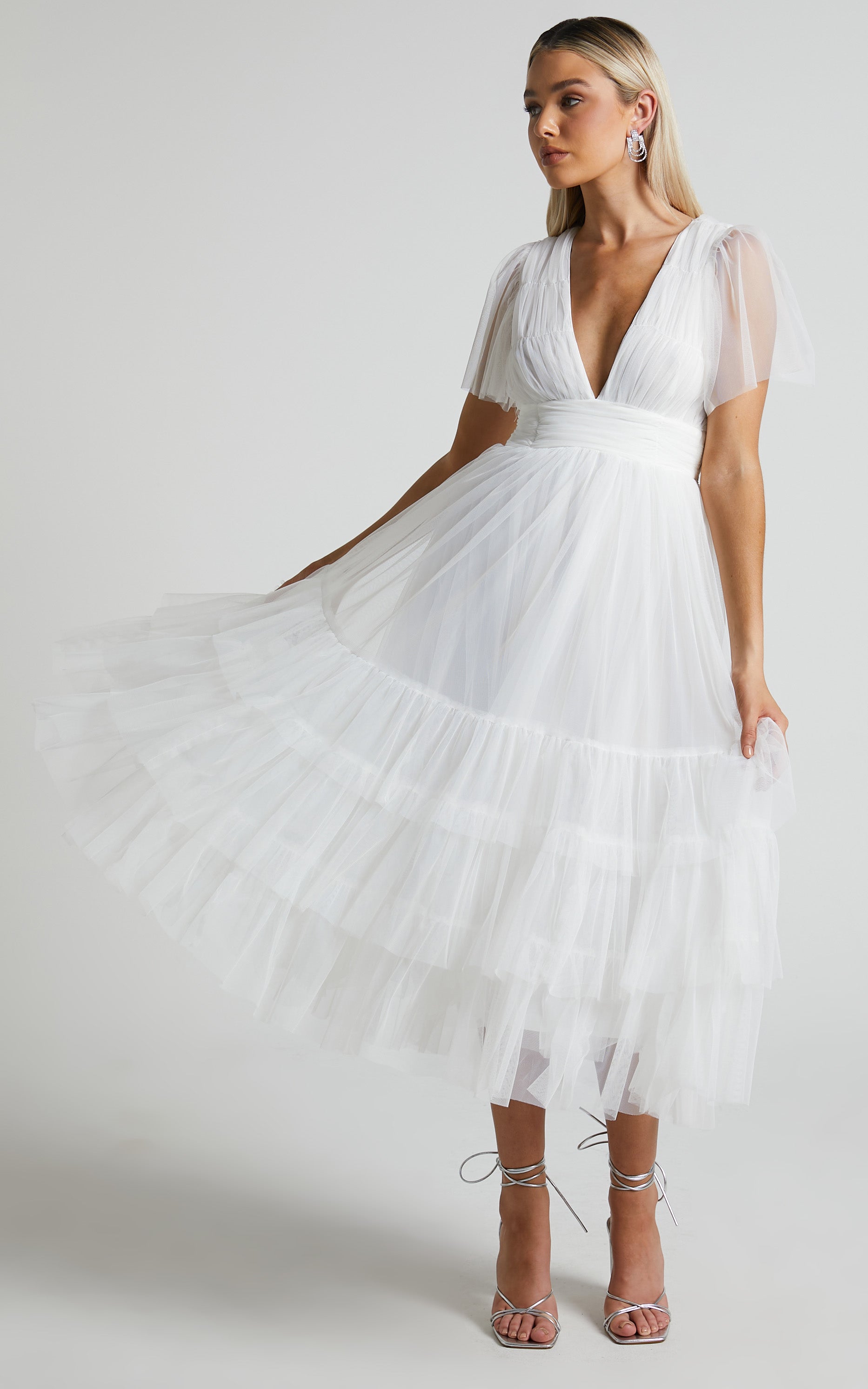 Jiraye Midi Dress frames the waist, skims the hips and brings that twirl factor without the fuss. The flutter sleeves add movement, the plunge adds drama, and the midi length keeps it polished for ceremonies, long lunches and dance floors alike. Style it your way, think raffia bags for Summer Boho charm or shield sunglasses for a bold, fashion-forward edge.