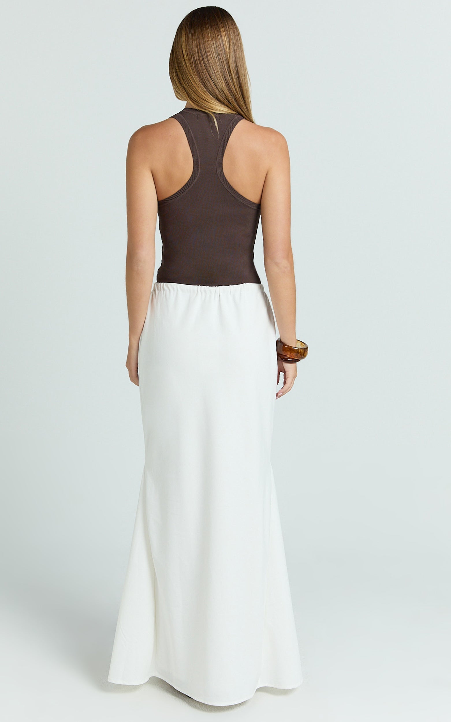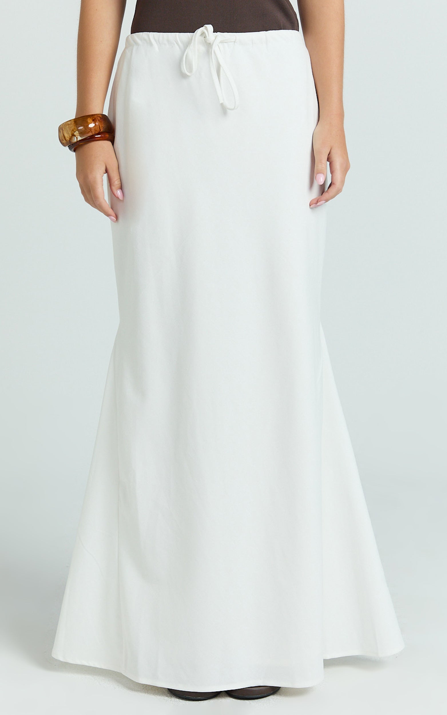 The Jonah Maxi Skirt in Off White is your new go-to for timeless, effortless style. Think easy movement, subtle swish, and an off-white tone that goes with everything - perfect for dressing up or down. A versatile staple for every wardrobe, it blends clean lines with a flattering mid-rise that skims the waist without clinging. The elongating silhouette pairs beautifully with anything from a slouchy knit to a lace-trimmed cami. Keep it casual with sneakers and a crossbody bag for off-duty days, or elevate the vibe with strappy heels and gold hoops for your next brunch or garden party. Minimal, polished, and endlessly wearable, this maxi makes chic look easy.