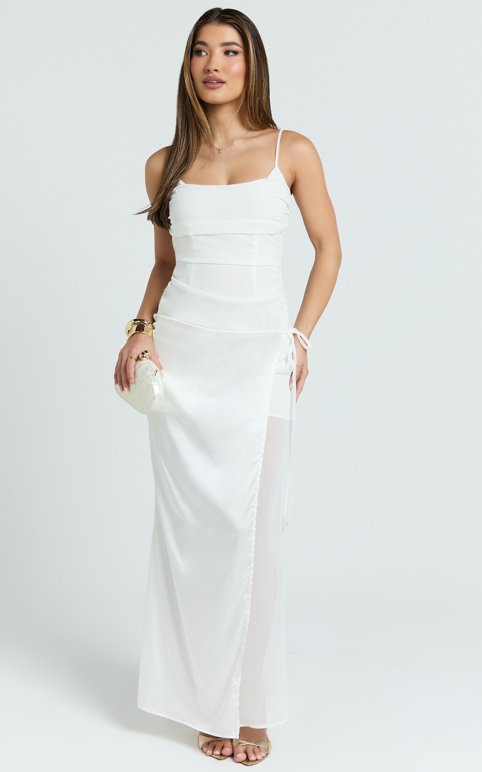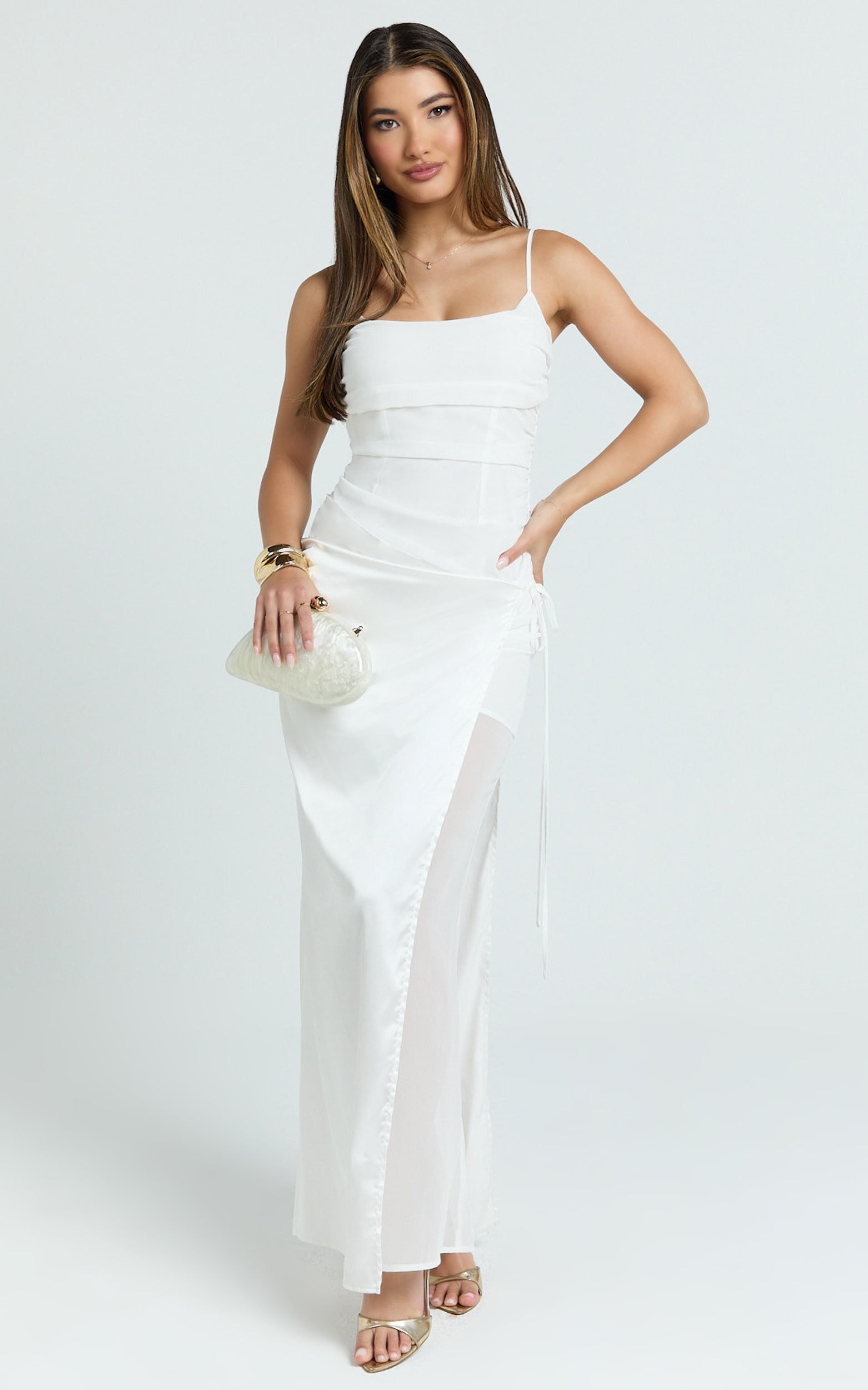 The crisp white hue feels fresh for every RSVP, think sunlit garden parties or rooftop cocktails, and the midi length keeps things chic yet playful.