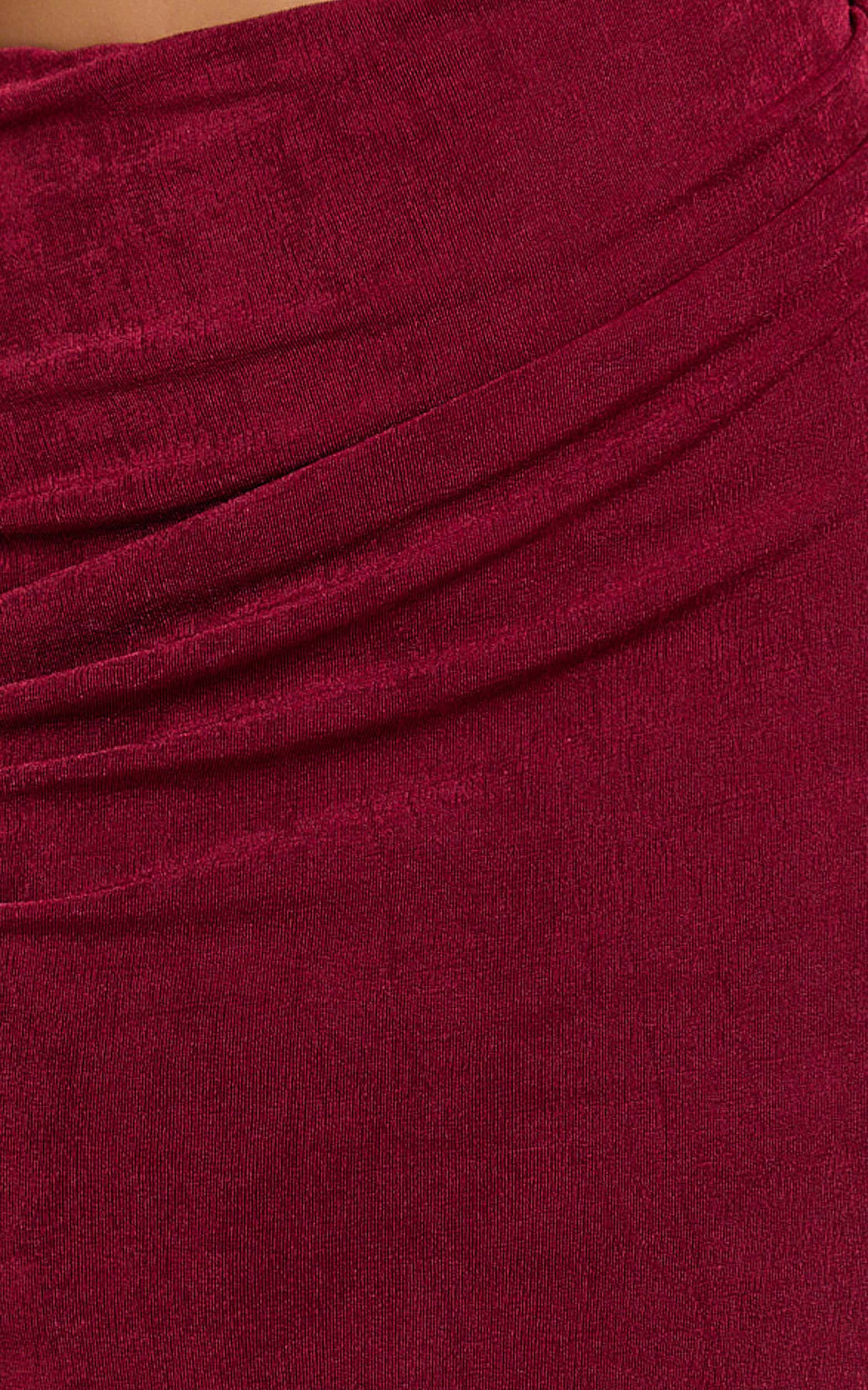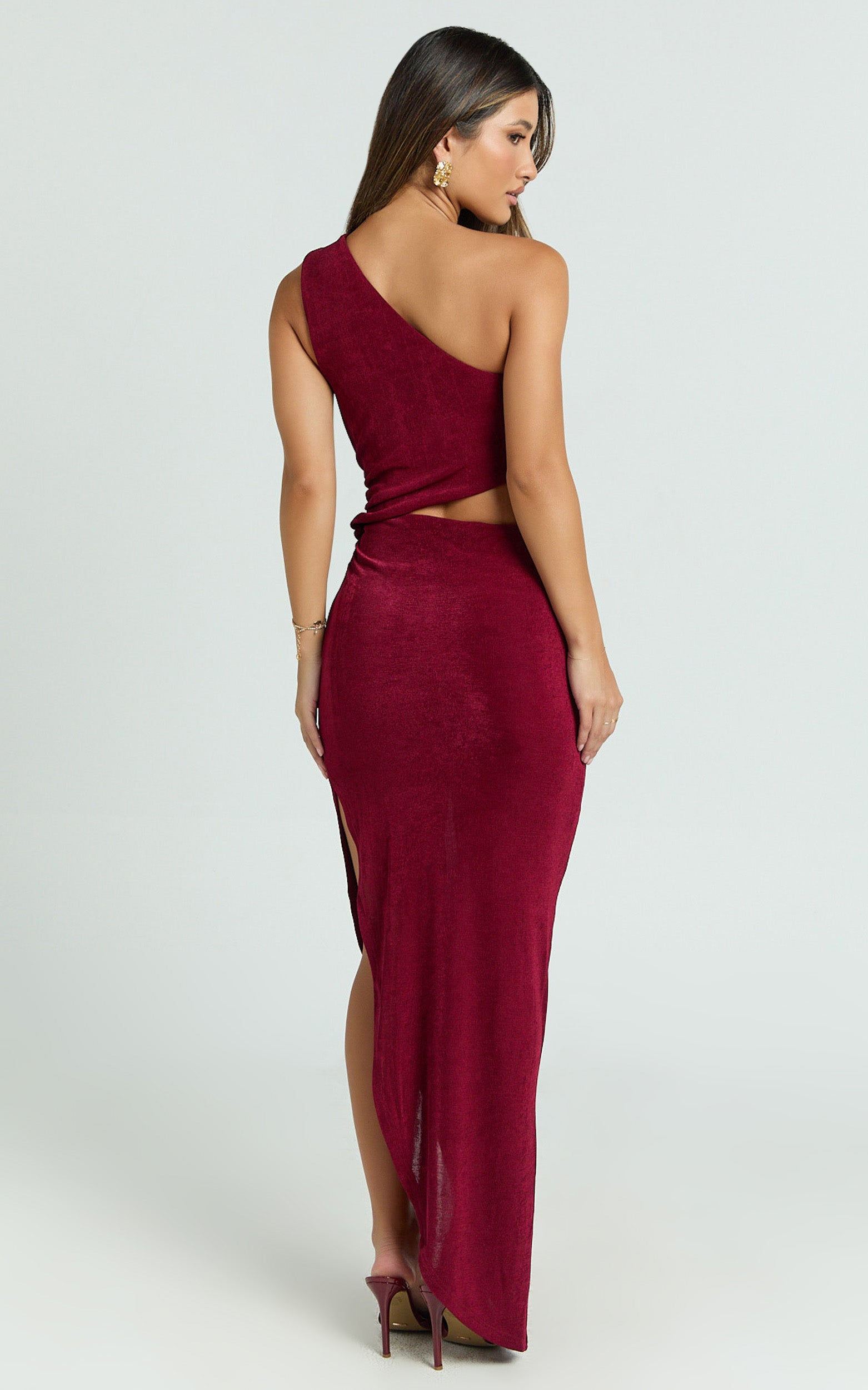 Make a statement in the Kala Midi Dress - a sophisticated blend of bold and beautiful, designed for the woman who isn't afraid to stand out. This one-shoulder, wine-colored masterpiece is your perfect companion for any occasion that calls for a touch of elegance and an ounce of confidence. Whether you're attending a cocktail event, serving as a wedding guest, or simply looking to elevate your wardrobe, the Kala Midi Dress speaks volumes without saying a word.