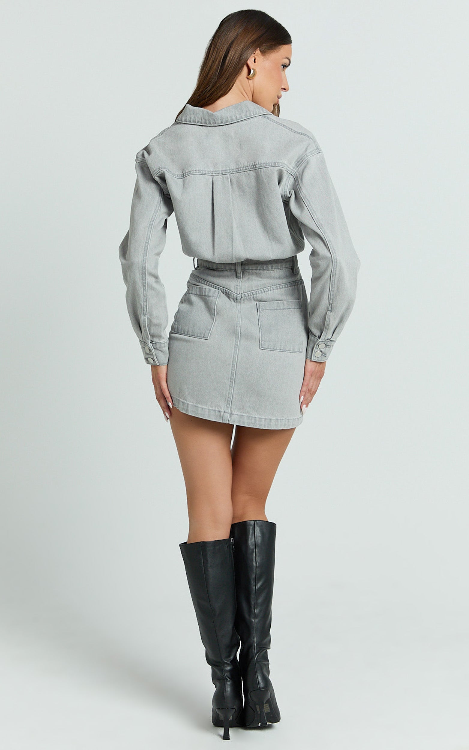 Think button-through front, long sleeves, and a cinched waist vibe that nails Quiet Luxury without trying too hard. The silhouette keeps it sleek while the wash adds that off-duty polish, perfect for weekend coffee runs or a night out. It’s an instant Statement outfit in one sweep.