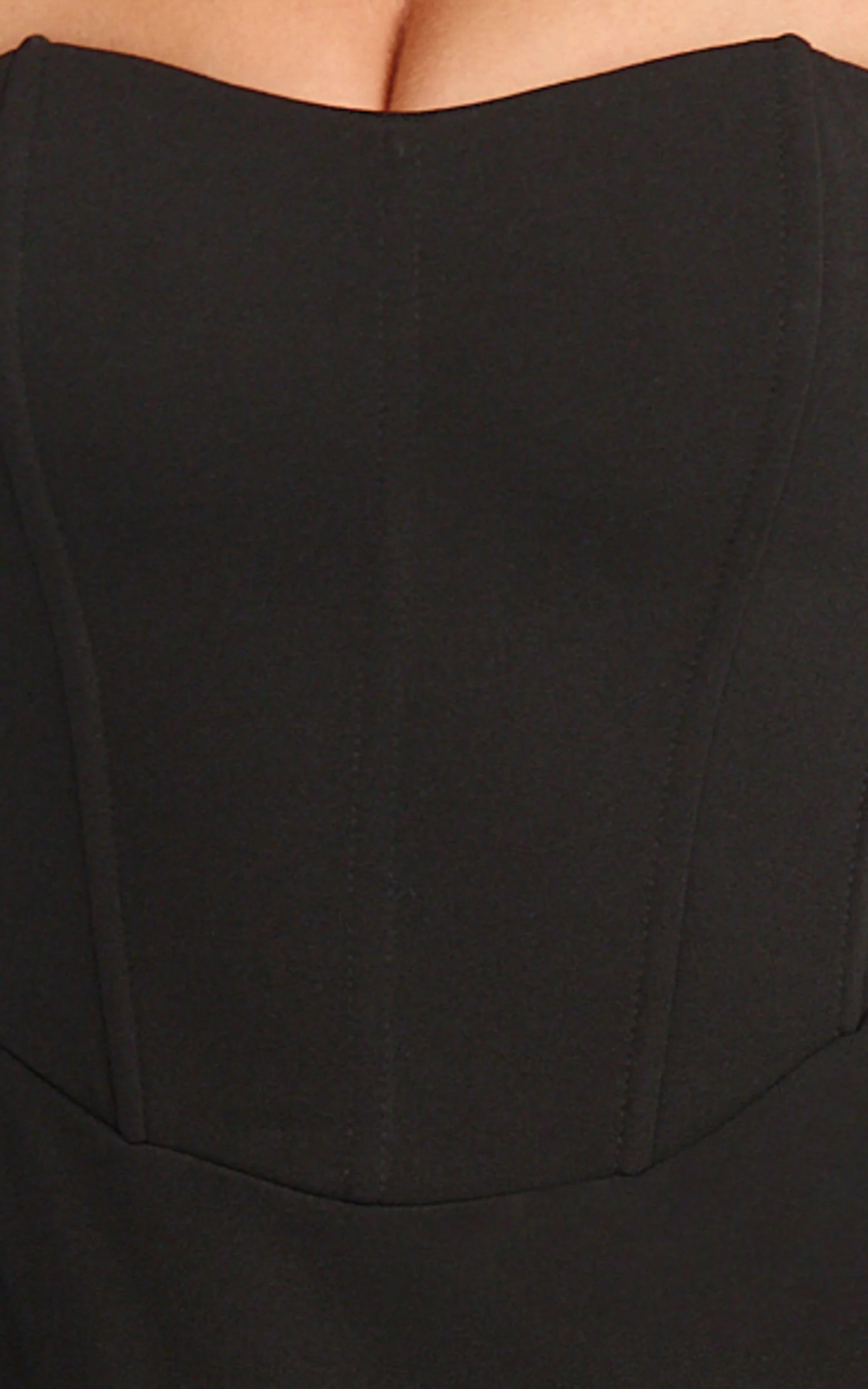 The neckline frames your shoulders, the cinched waist sculpts, and the sweeping black skirt brings effortless drama, hello, confidence. It’s that perfect mix of sultry and elegant for celebrations, formal events and dinner plans.