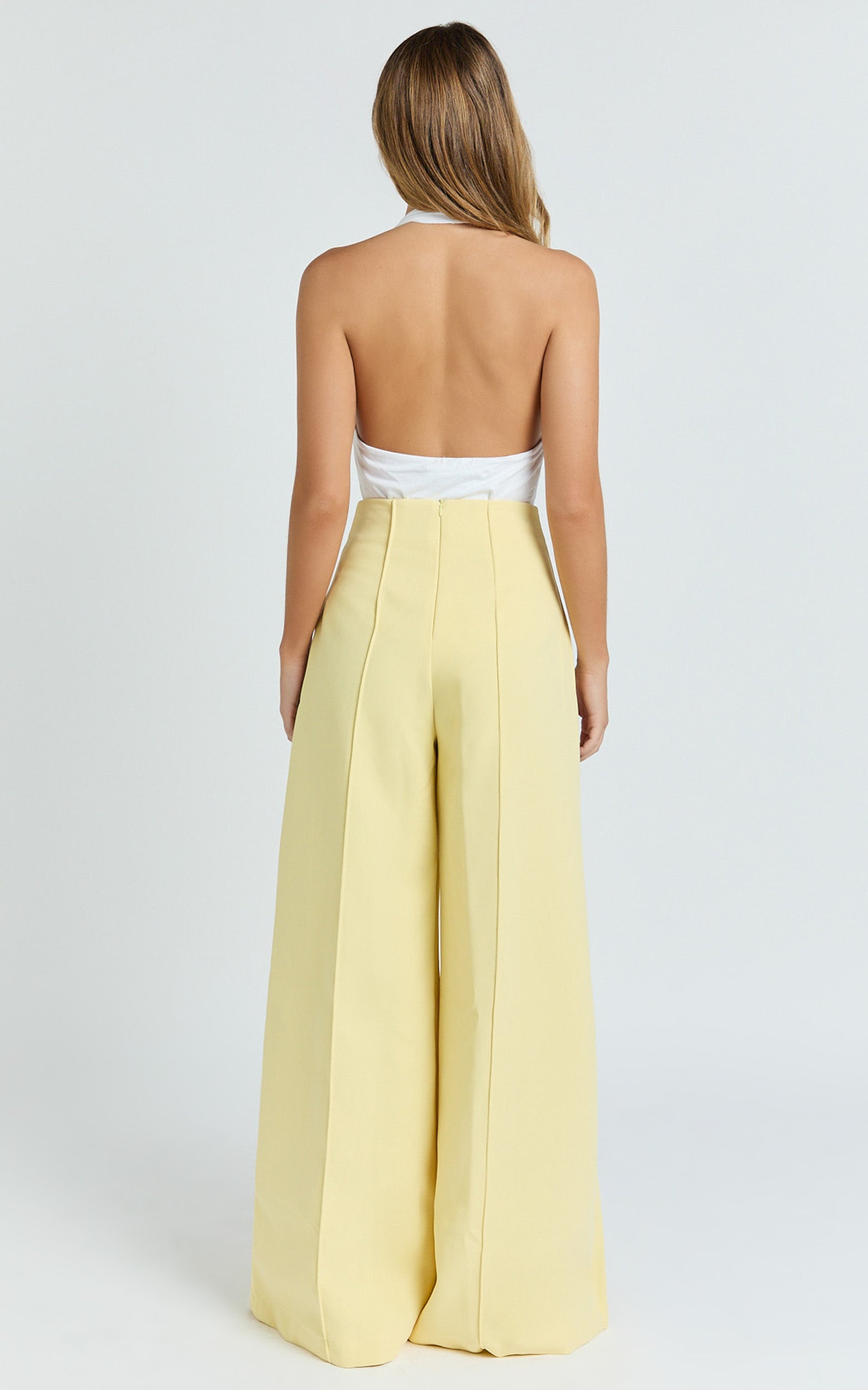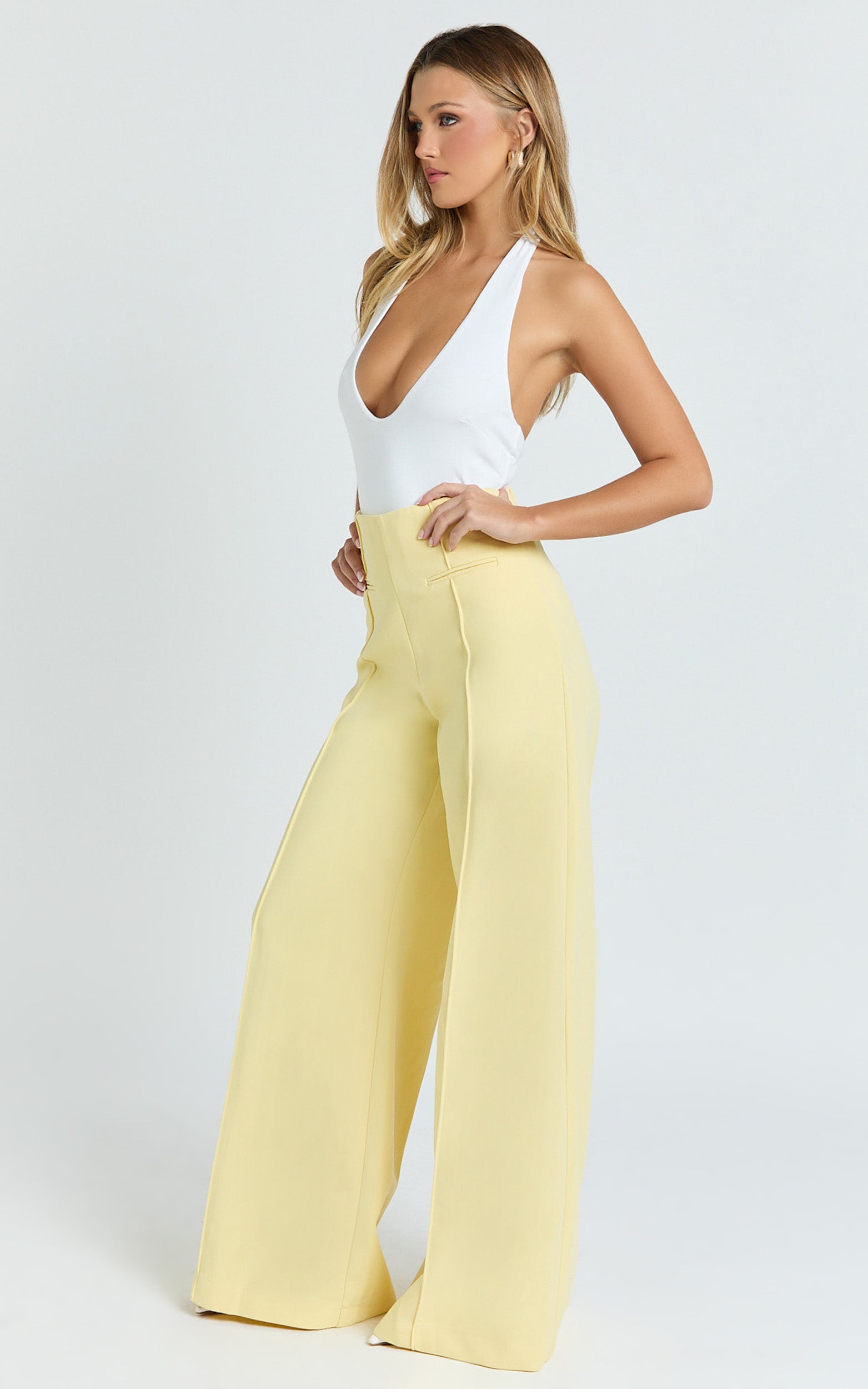 These high waisted wide leg Pants in lemon bring a fresh pop to your wardrobe with a flattering, elongated silhouette and a breezy, draped flow that moves with you. Think easy polish for desk to drinks, with a wide leg that sits just right and a waist that cinches you in for that clean finish.