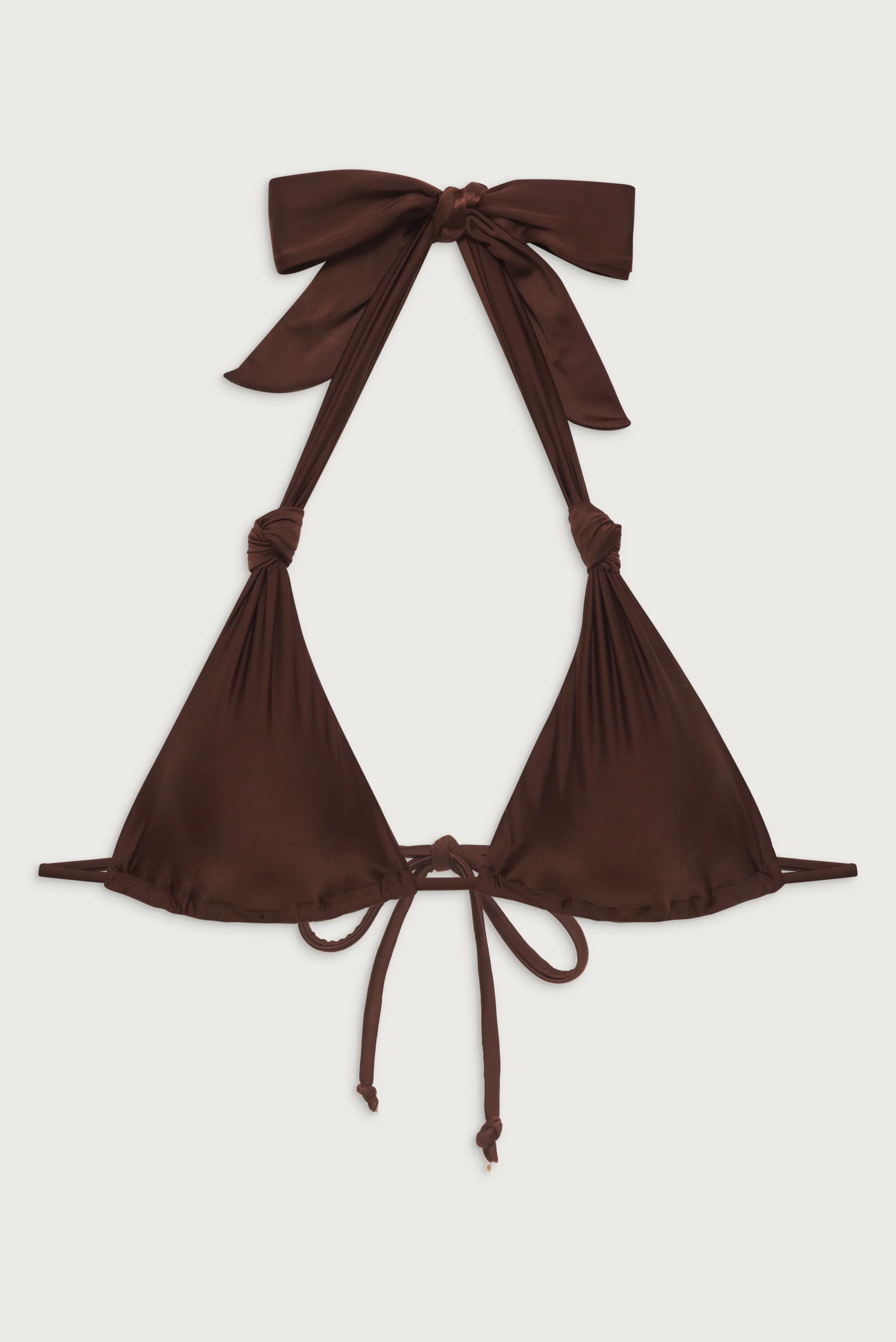 Introducing the Kealy triangle bikini top, an ode to early 2000s bombshell swimwear. The Kealy bikini top is designed in a fuller coverage fit with halter support. Complete the set with the matching Kealy bikini bottom.
