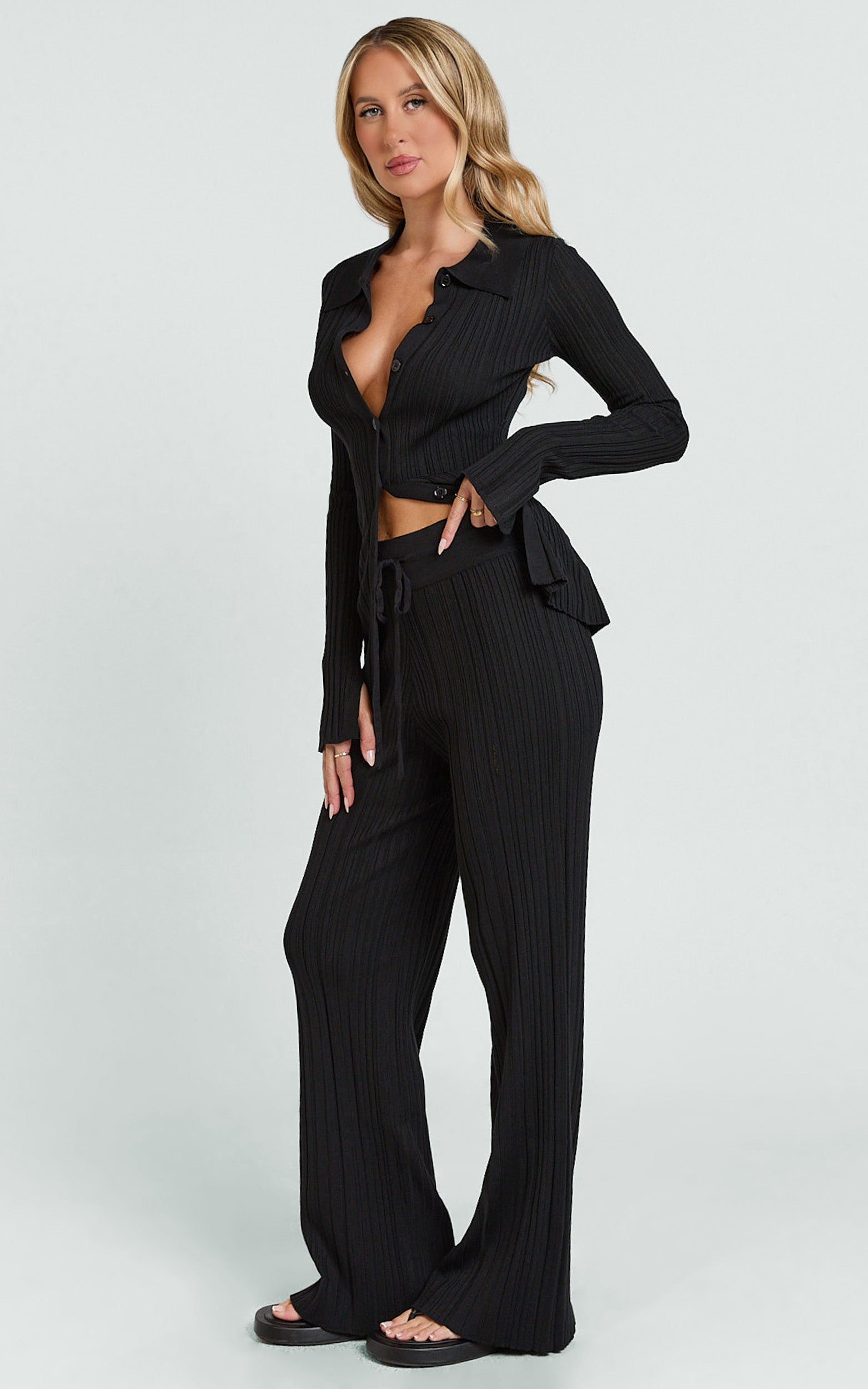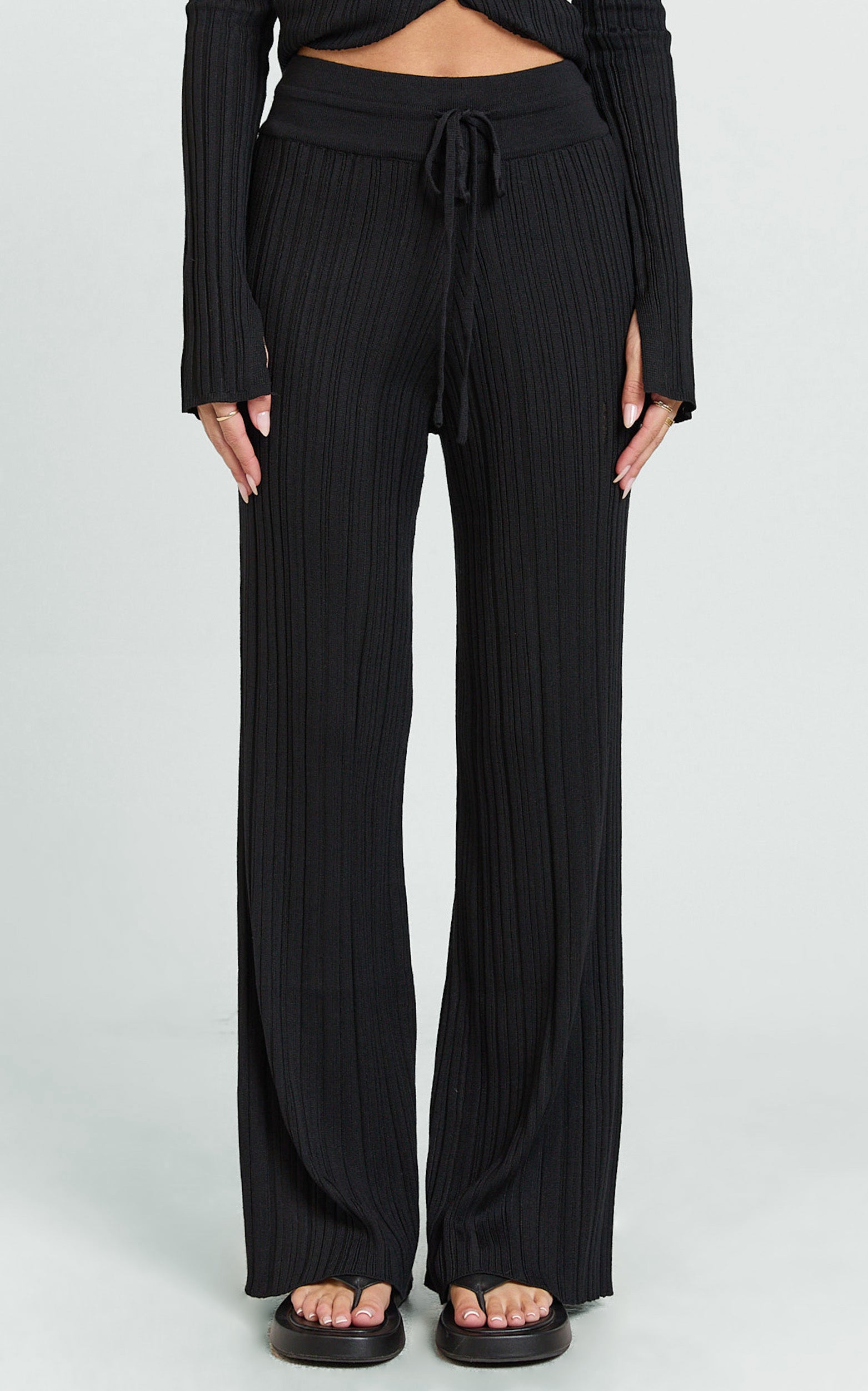 These Black pants cinch comfortably with a drawstring waist, creating an elongated silhouette that flatters and flexes from coffee catch-ups to late-night plans. Clean lines keep it polished while the relaxed leg gives that laidback luxe vibe, think desk-to-dinner without the outfit change.