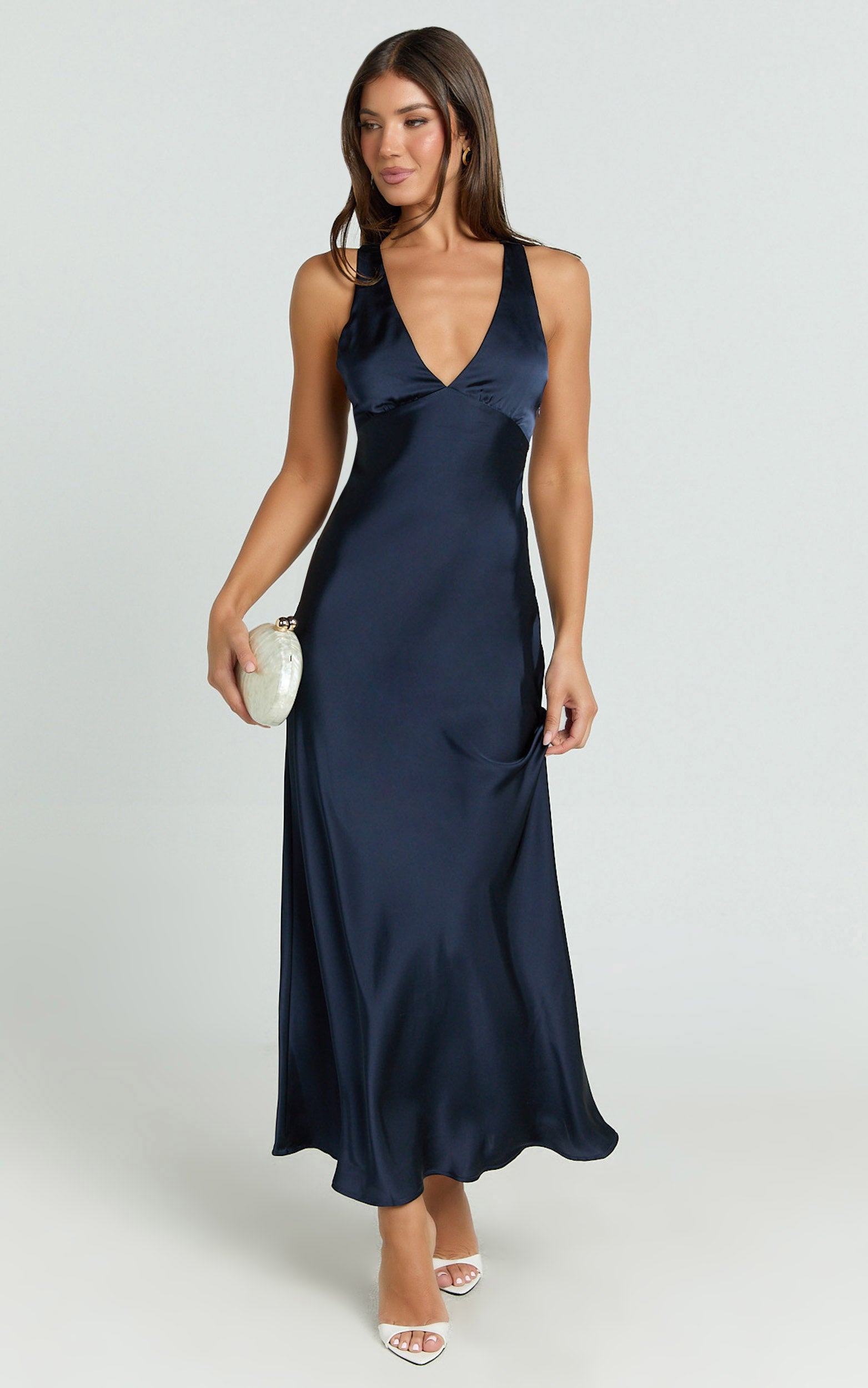 This deep V neckline, curve-skimming silhouette and side-slit energy bring effortless sex appeal with polished Versatility, equally at home for weddings, date nights or the dance floor. The midi length keeps it refined while the sultry sheen catches every spotlight.
