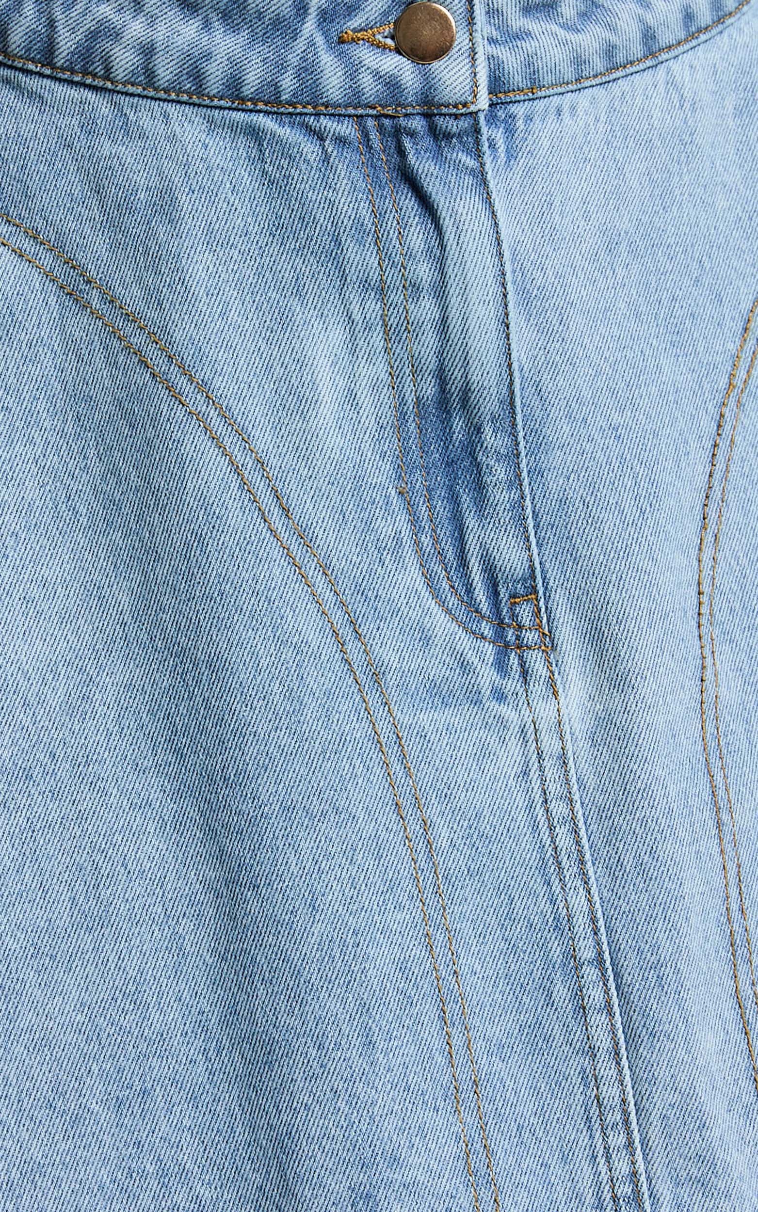 Make a statement in the Koemi Skirt, a game-changing piece that's reshaping the casual fashion scene with its high-waisted, denim flare design in an effortlessly cool light blue wash. Perfect for the eco-conscious fashionista, this fit & flare skirt is crafted from recycled cotton, blending sustainability with chic style.
