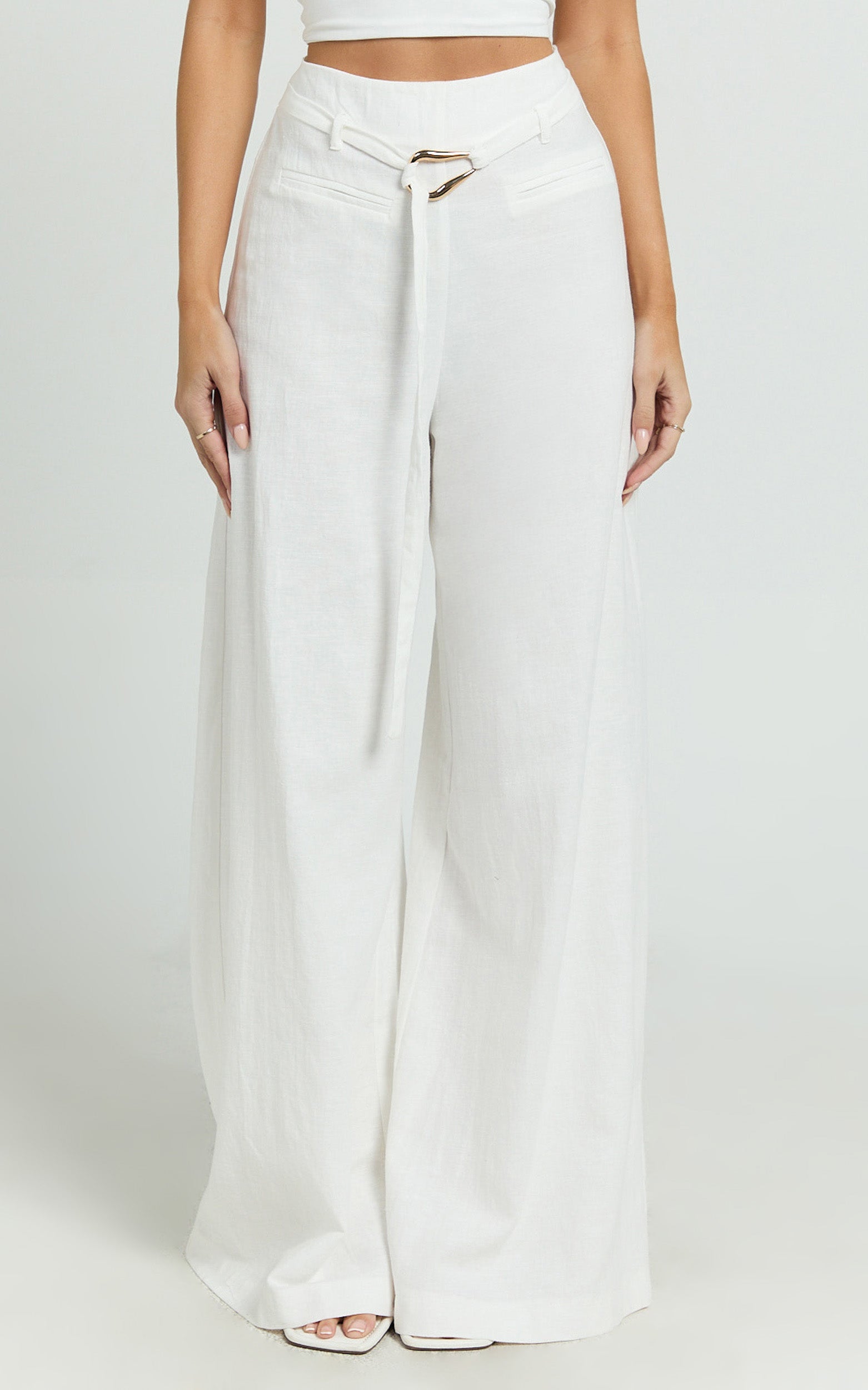 Style the Kyra Pants with a fitted crop top and strappy heels for after-dark energy, or keep it fresh with a tucked-in tee and sleek sneakers. High waist, wide leg, and a belt that cinches just right, these Pants deliver a polished look that feels as good as it looks, especially in versatile White.