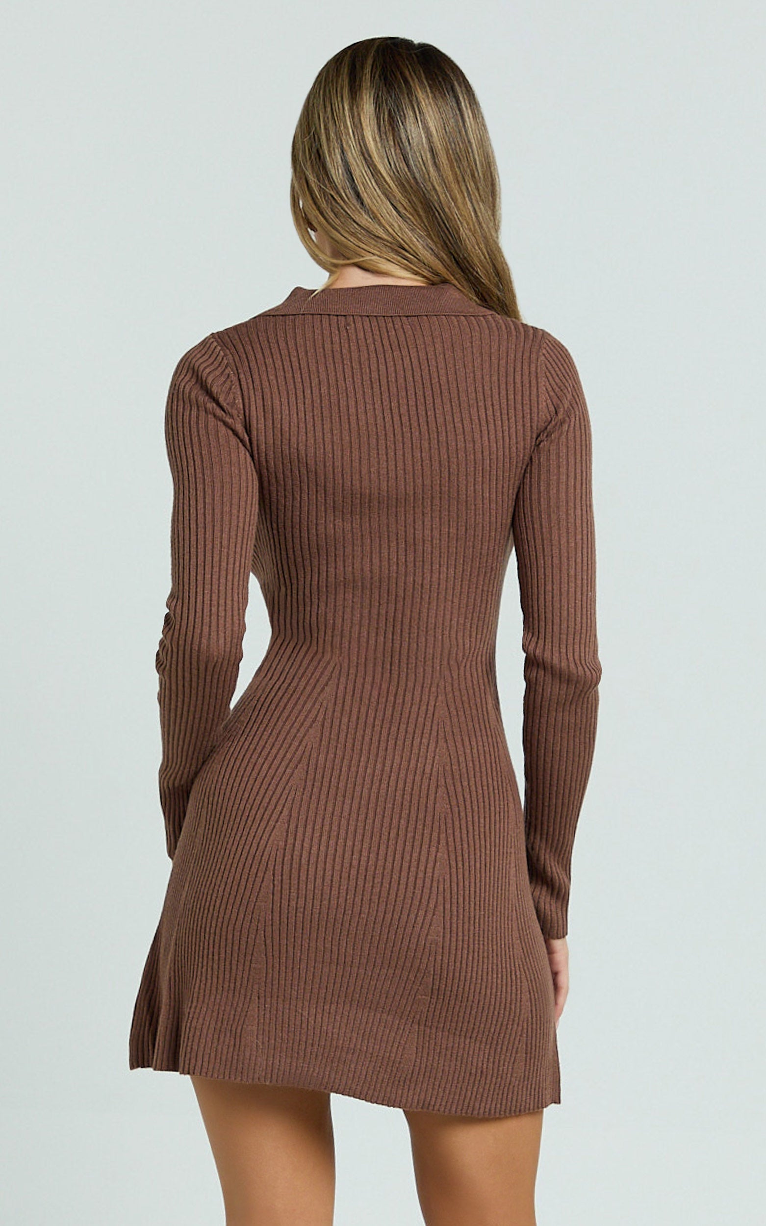 The placket detail and body-hugging fit give clean lines, while the rich brown hue taps into Bright Knits energy for the new season. Style it solo with strappy heels for a night out or dress it down with ankle boots for coffee runs, effortless Dresses vibes that still feel put-together.