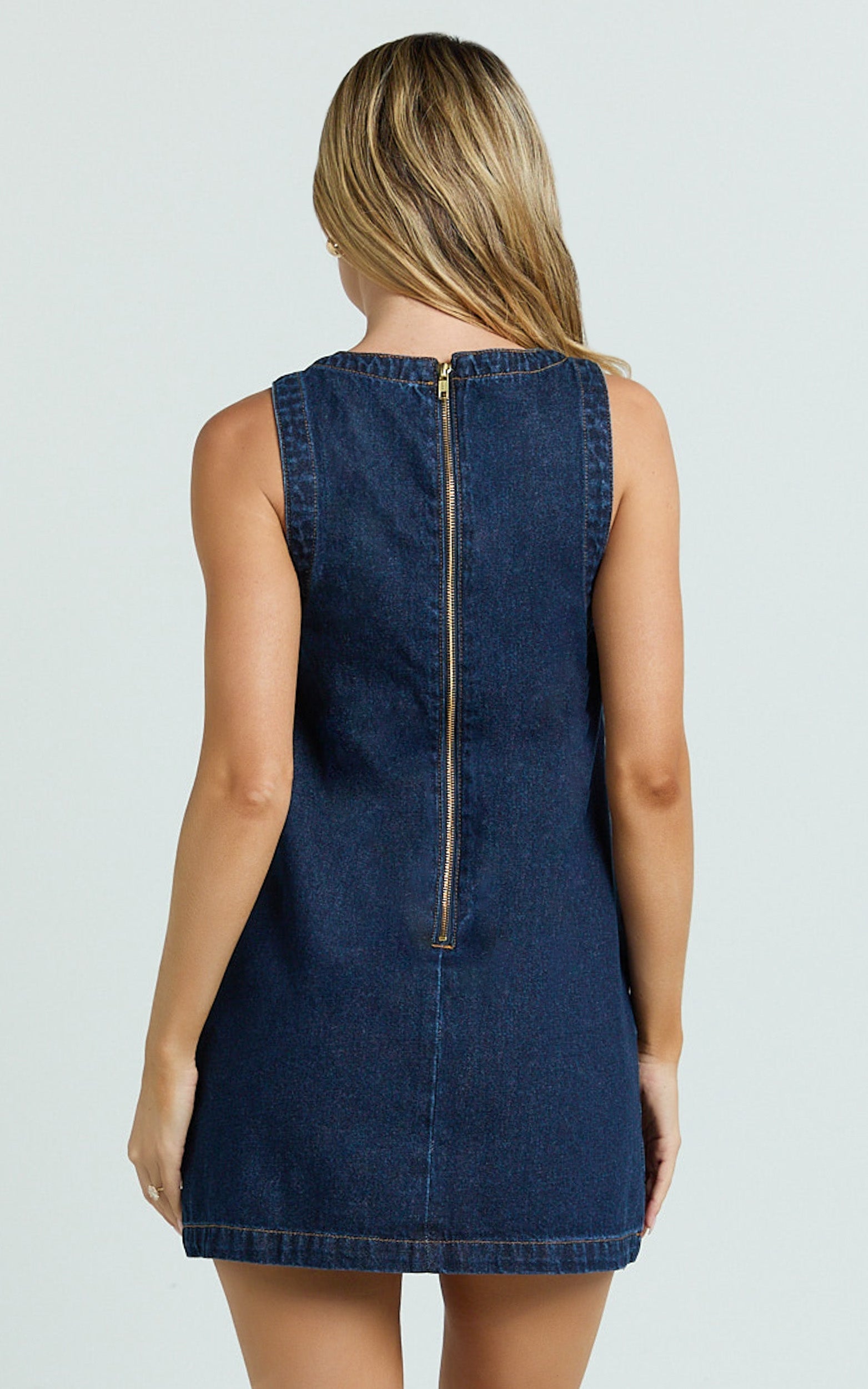 The Leia Mini Dress in Dark Blue Wash brings a sleek high neckline, mock button-down front, and curve-skimming silhouette that reads polished but still playful. The dark blue denim wash feels elevated enough for daytime plans yet fun enough for nights out, short hem, clean shape, legs for days. Effortless and versatile, this mini nails that throw-on-and-wow energy. Style with big hoops and a minimal shoulder bag for brunch, or switch to strappy heels for date night. From desk-to-drinks to spontaneous weekend plans, it’s the denim dress that keeps you looking sharp with zero effort.