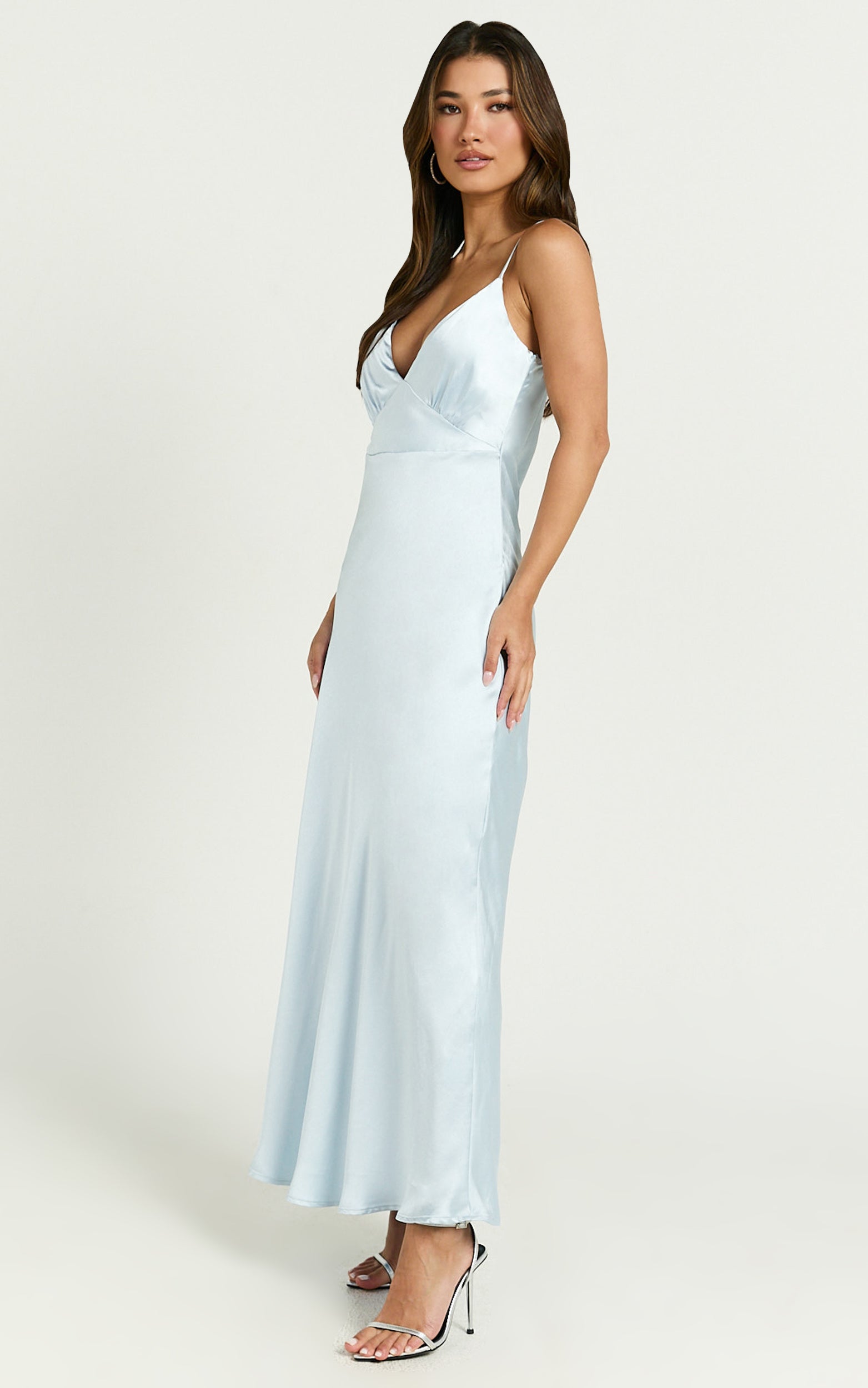 Unveil effortless elegance and embrace your radiant self with the Lorenzia Maxi Dress. Crafted in luxurious light blue satin that flows gracefully with every step you take, this dress is more than just a piece of clothing—it's a statement of sophistication and self-confidence. Perfect for formal occasions, from being a standout bridesmaid to turning heads at any wedding, this sleeveless maxi dress combines timeless charm with modern allure.