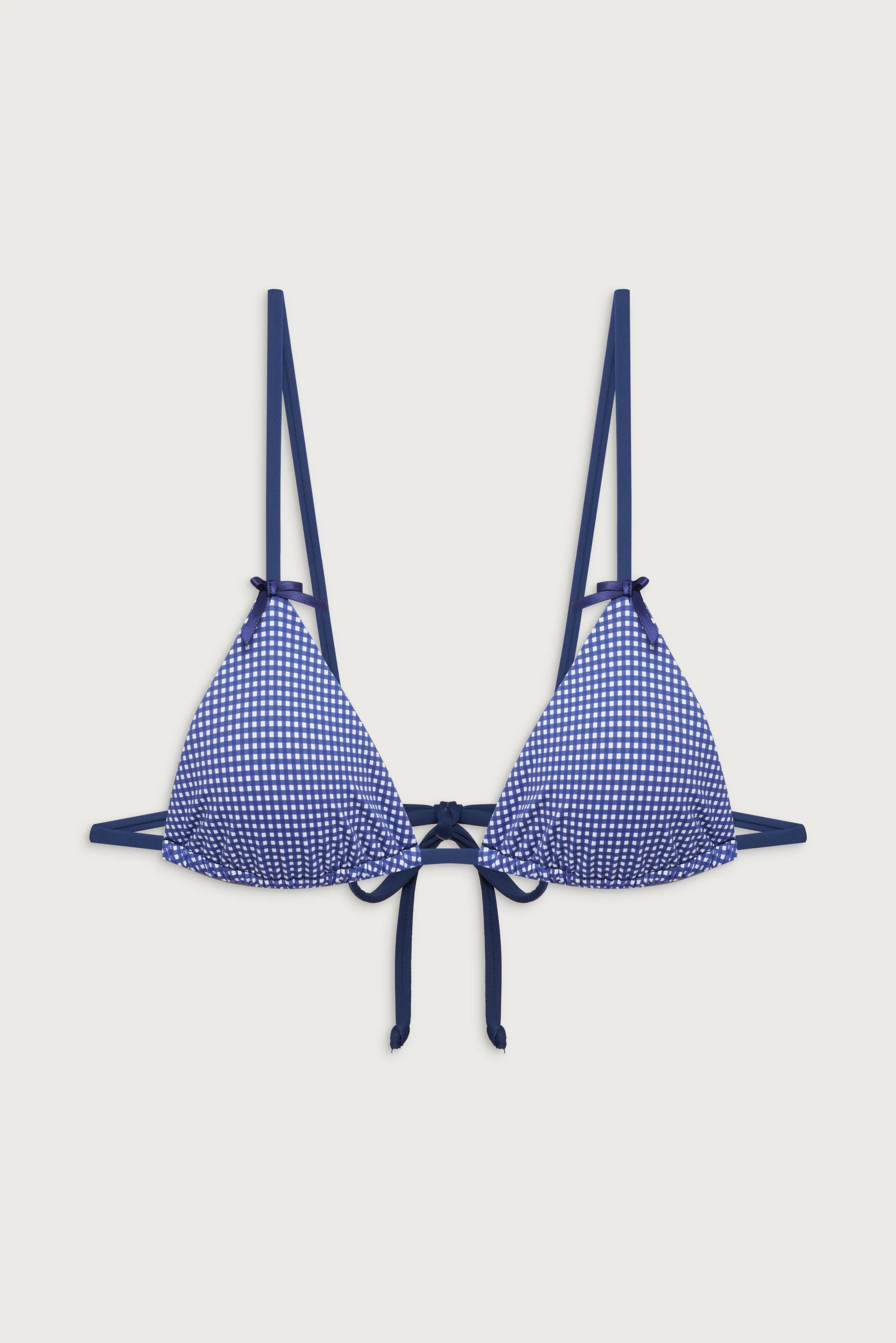 A skimpy addition to your swimwear collection. The Lumia triangle bikini top features bow details and an adjustable back tie ensuring a customizable and comfortable fit. Create a timeless set by pairing this bralette-style bikini top with the matching Enzo bikini bottom.