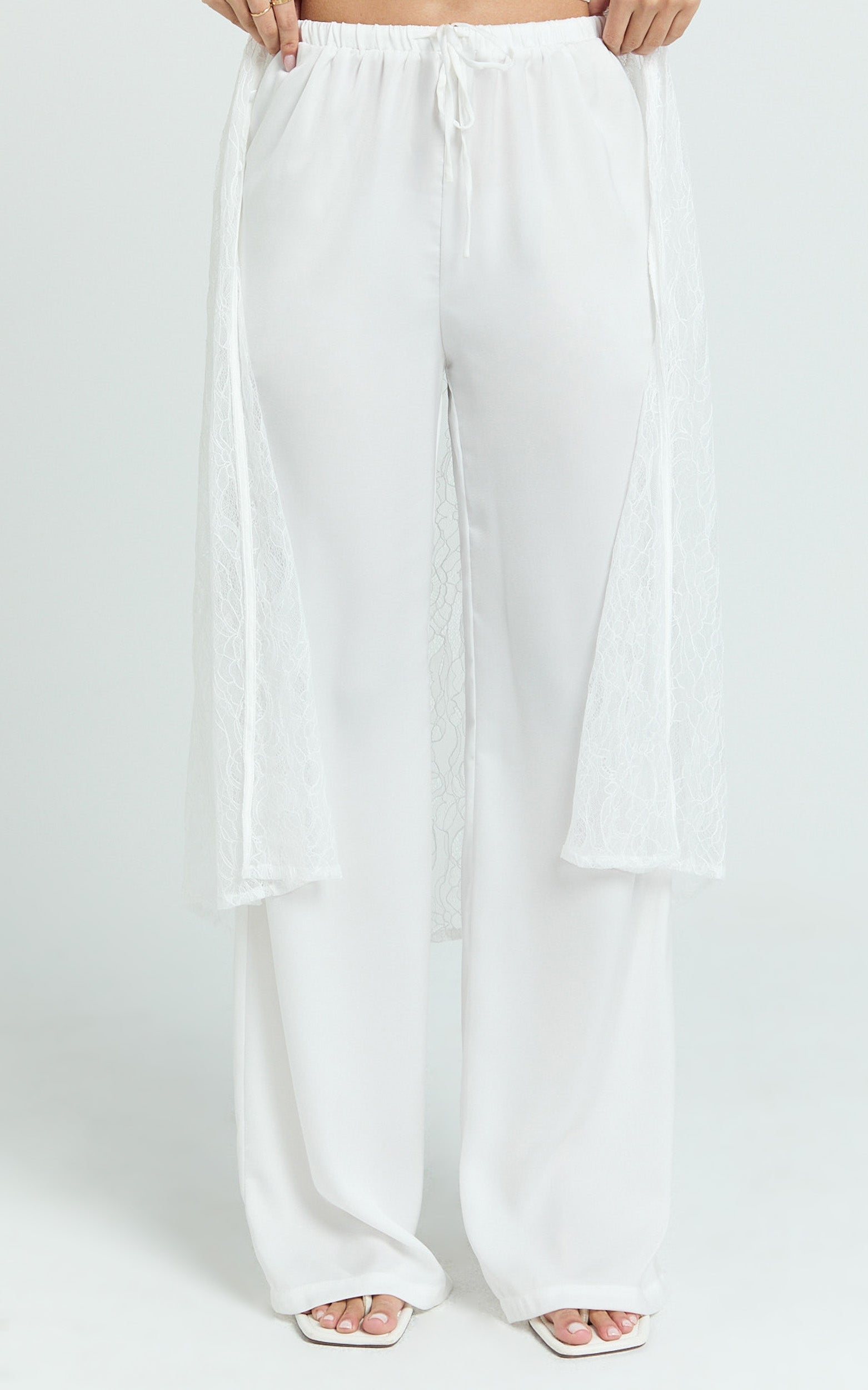With an easy elasticated waist and adjustable ties, they sit comfortably and drape with a fluid, leg-lengthening silhouette, perfect for nights out, long lunches, or chic travel looks. The crisp white finish nails the Old Money aesthetic while keeping things modern and minimal.