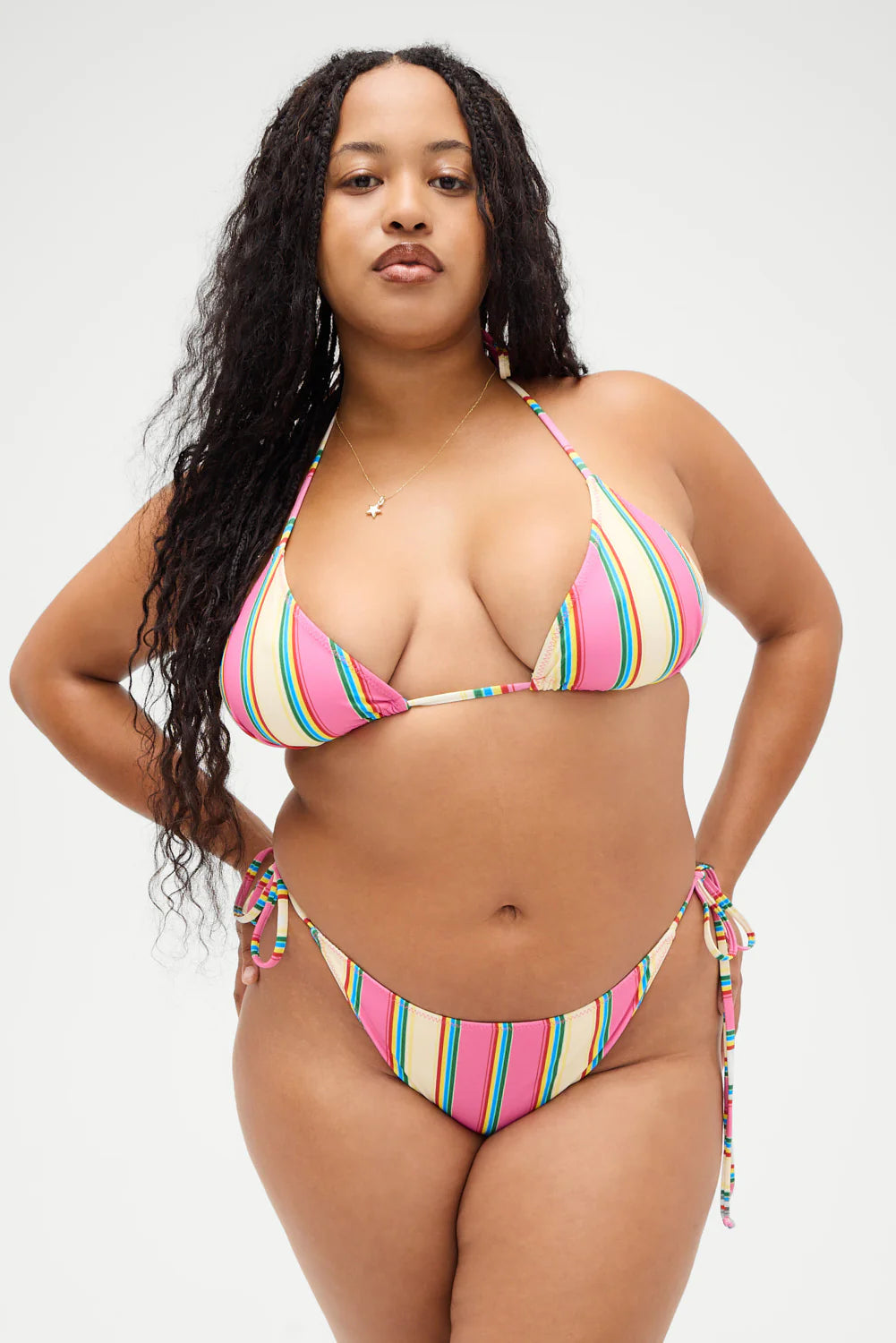 This Frankies Bikinis classic bikini bottom has finally returned. Featuring cheeky coverage, customizable side ties, and a flirty low-rise fit, the Mackenzie bikini bottom is an easy choice for summer vacations.