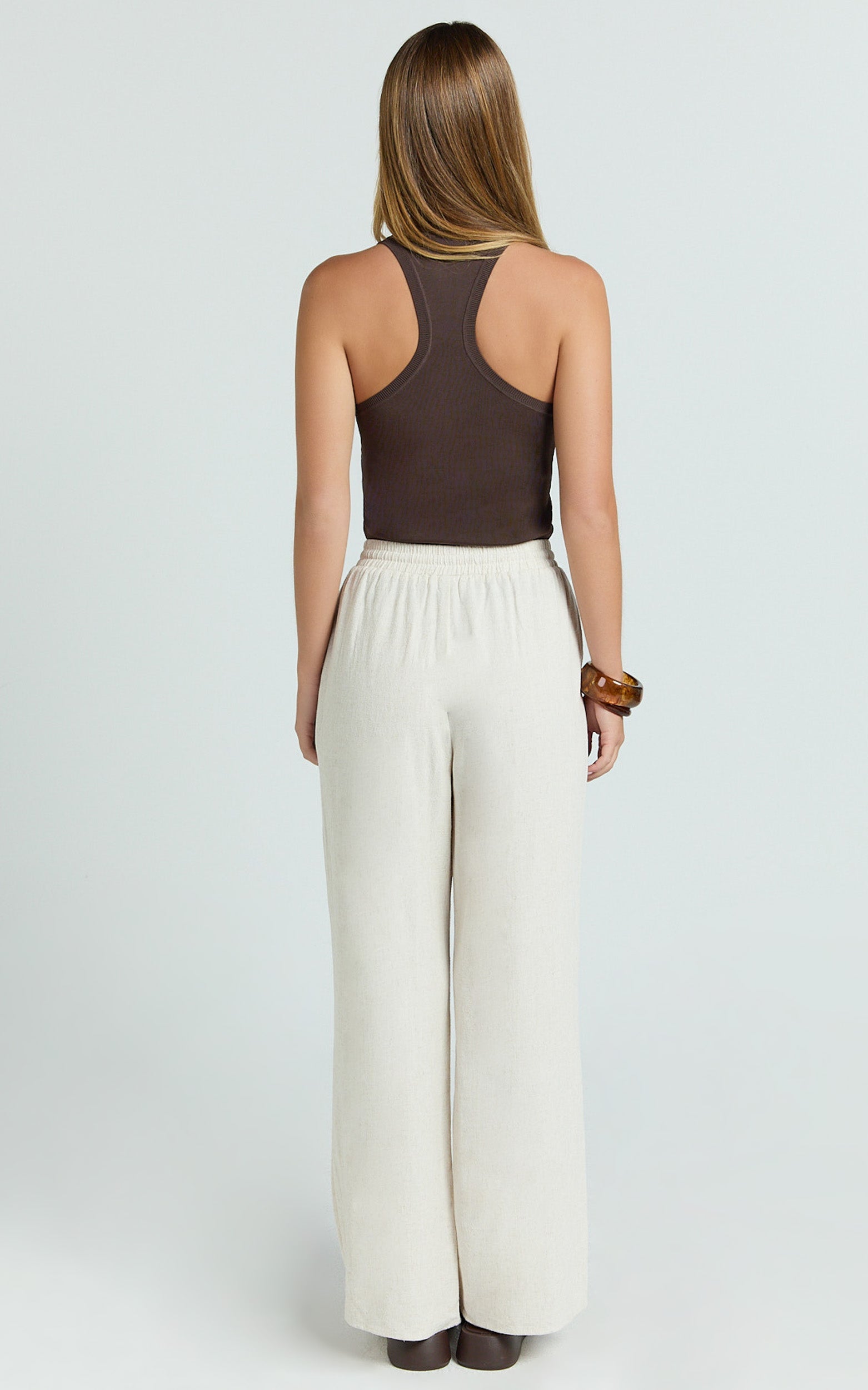 The Marina Pants in Natural bring effortless polish with a mid-waisted fit, comfy elastic waist, and fluid straight-leg silhouette that drapes just right. In a soft natural tone, they’re endlessly versatile - perfect for desk-to-dinner plans, weekend coffee runs, and everything in between. Pair them with a fitted tank and sleek pendant necklaces for a balanced look, or keep it relaxed with a breezy top and easy slides. Dress up with strappy heels or down with your favourite sneakers, these neutral pants go with everything and always look intentional.