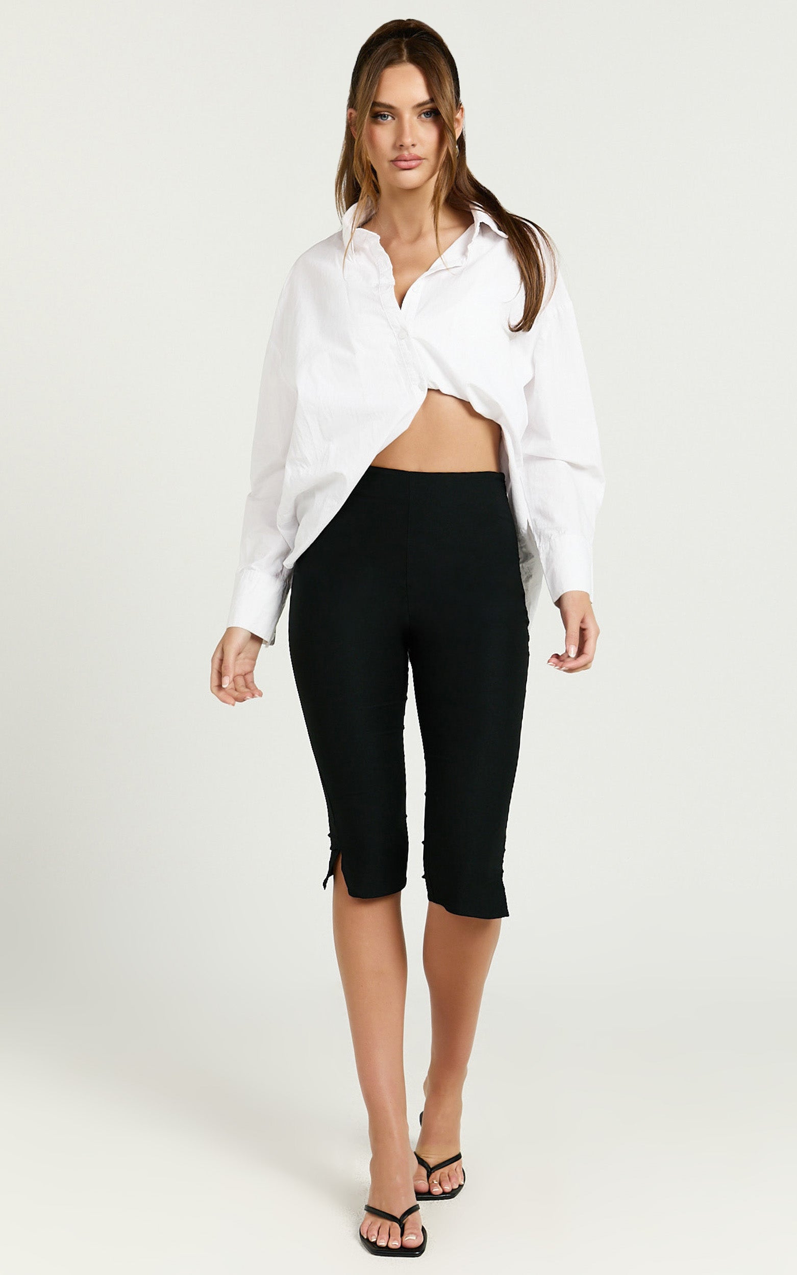 Elevate your wardrobe with the Melenda Pants – your go-to Tailored Side Split Capri Pants in Black. These aren't just any pants; they're a statement of empowerment and sophistication, crafted for the modern woman who values both style and comfort. Made from lightweight woven rayon, these cropped pants promise breathability and ease, making them perfect for all-day wear, whether you're conquering the boardroom or enjoying a day out in the city.