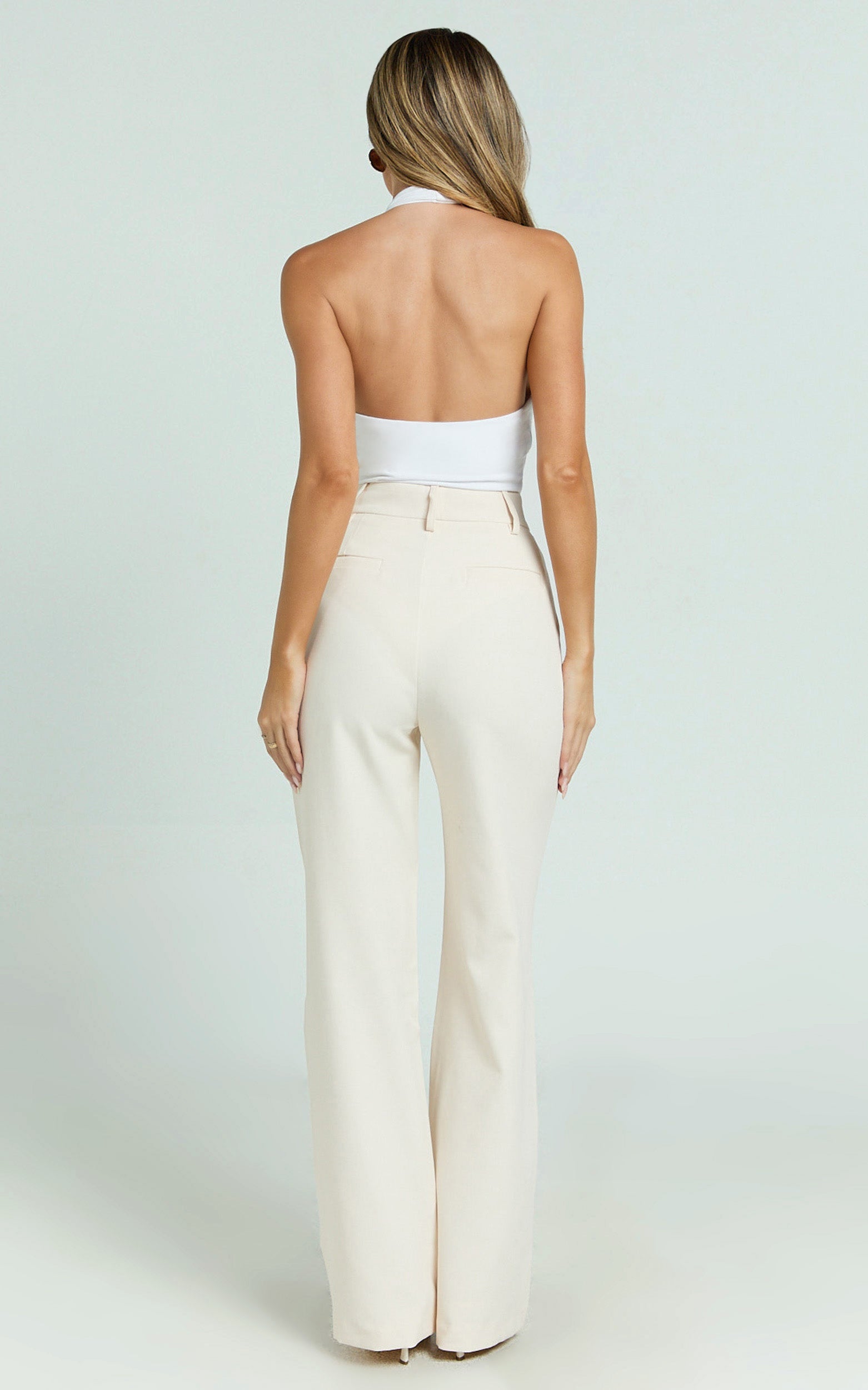 Style the Melissa Pants - Pleat Front Wide Leg Tailored Pants In Cream with a trench and sleek heels for an office-to-out look, or lean into Tennis-Inspired minimalism with a fitted top and crisp accessories. A versatile hero that flatters, lengthens, and levels up every outfit.