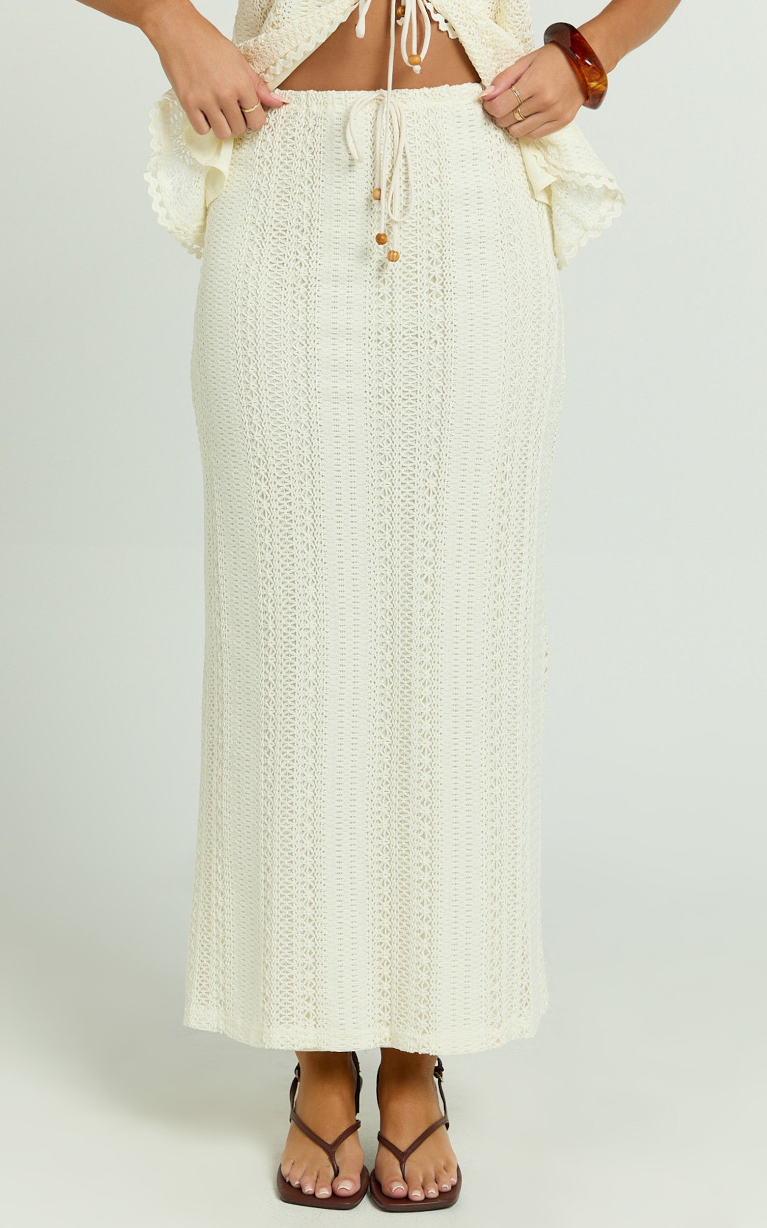 Make a statement in the Mercedes Maxi Skirt, your next fave piece for spinning between casual catch-ups and those calendar-marked party days! This cream-colored gem redefines the meaning of versatility in the wardrobe of any Gen Z or Millennial fashionista, seamlessly flowing from sunlight to moonlight.