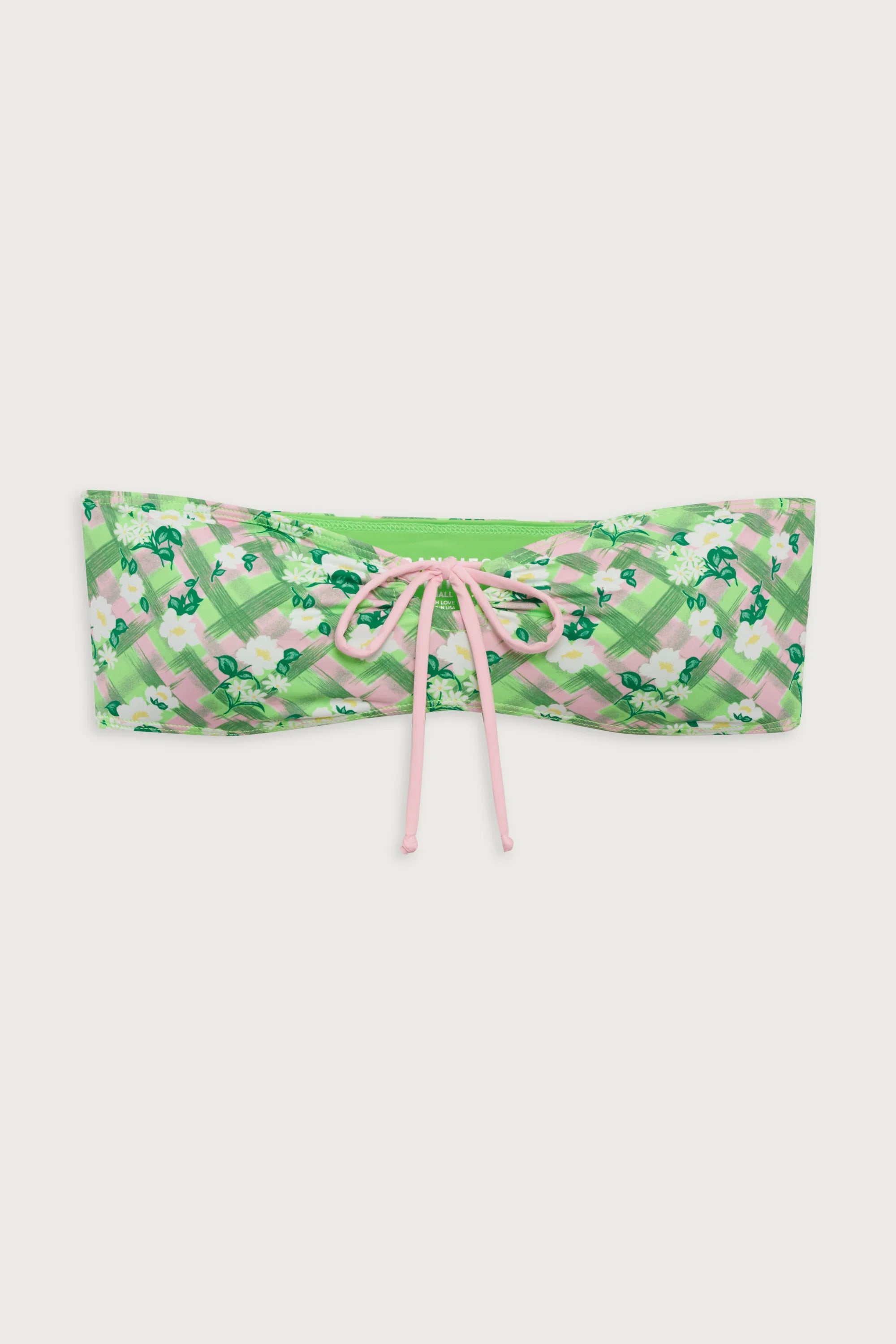Start off spring in our signature bandeau bikini top. The Meredith bikini top is designed in our new floral plaid print with a keyhole cut out and tie on the bust. Pair Meredith with the matching Mackenzie bikini bottom as your go-to flirty set.