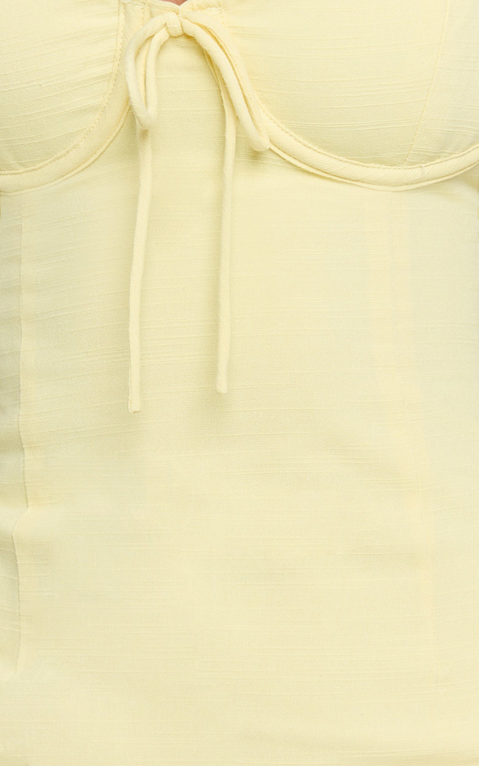 Think sweetheart neckline, ruched bust and a fitted silhouette that skims just right, perfect for day parties, long lunches and nights that run late. The yellow hue pops against sunkissed skin while the mini length keeps it playful yet polished.