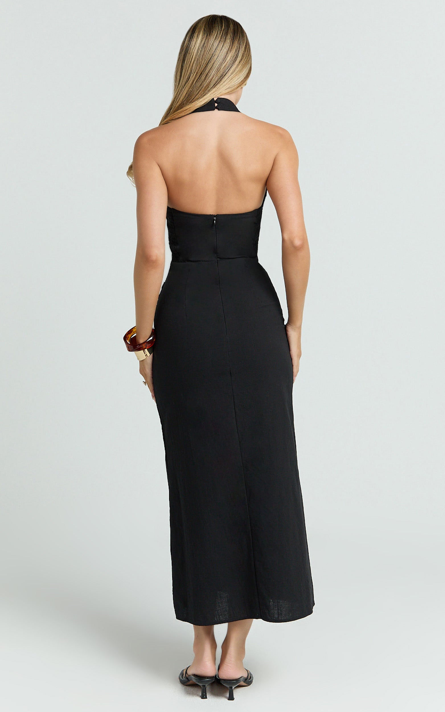 Cut to a midi length with a sleek, body-skimming fit, it frames your neckline, sculpts an elongated silhouette, and brings that after-dark confidence. Minimal fuss, maximum impact, the perfect addition to your rotation of Dresses and party looks.