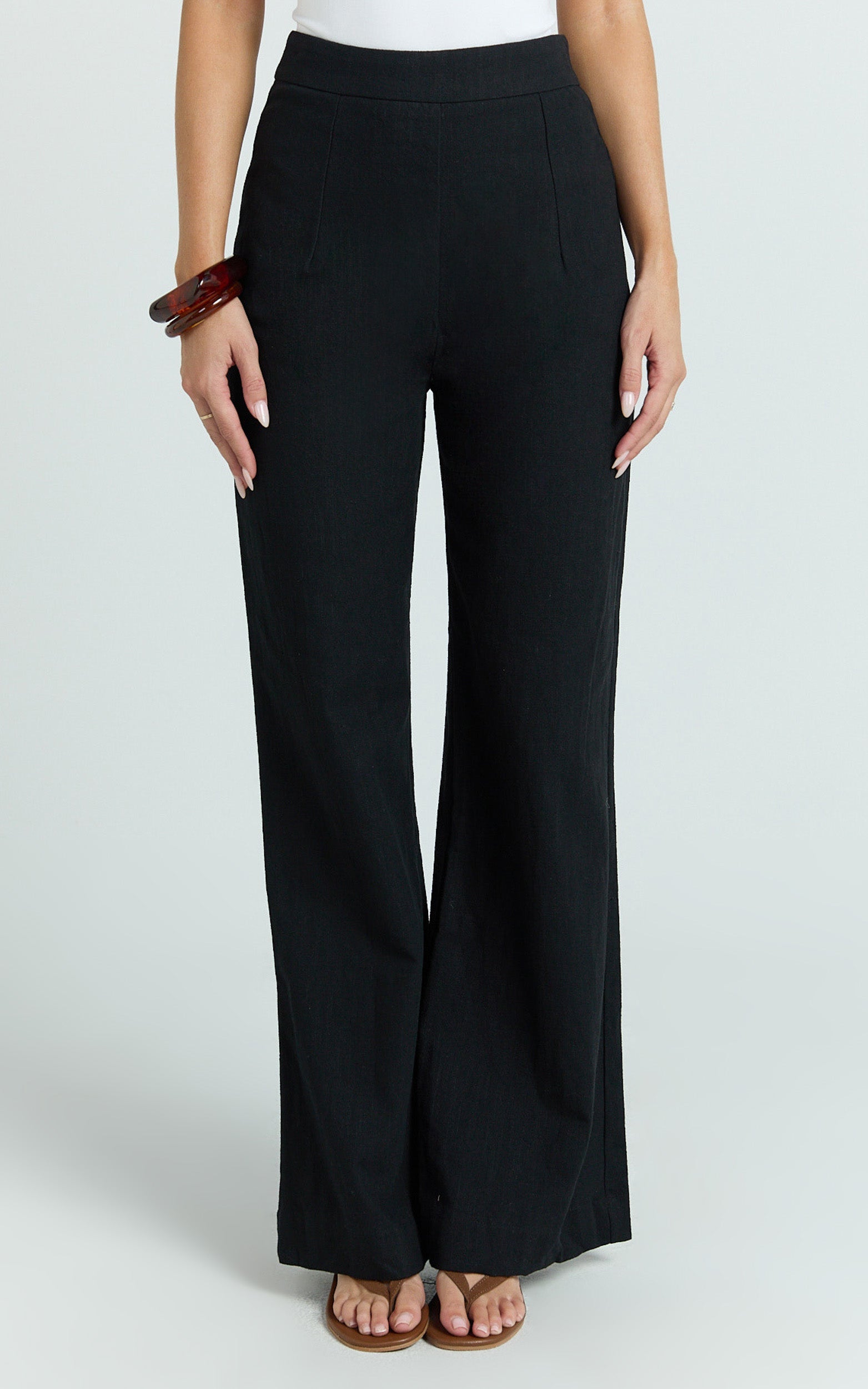The Narcisa Pants are crafted for movement with a smooth, linen-look finish that reads refined without the fuss. Dress them up with a fitted blazer and a sleek tank, or keep it off-duty with a cropped tee and slingback flats, either way, these black Pants deliver elevated ease every time.