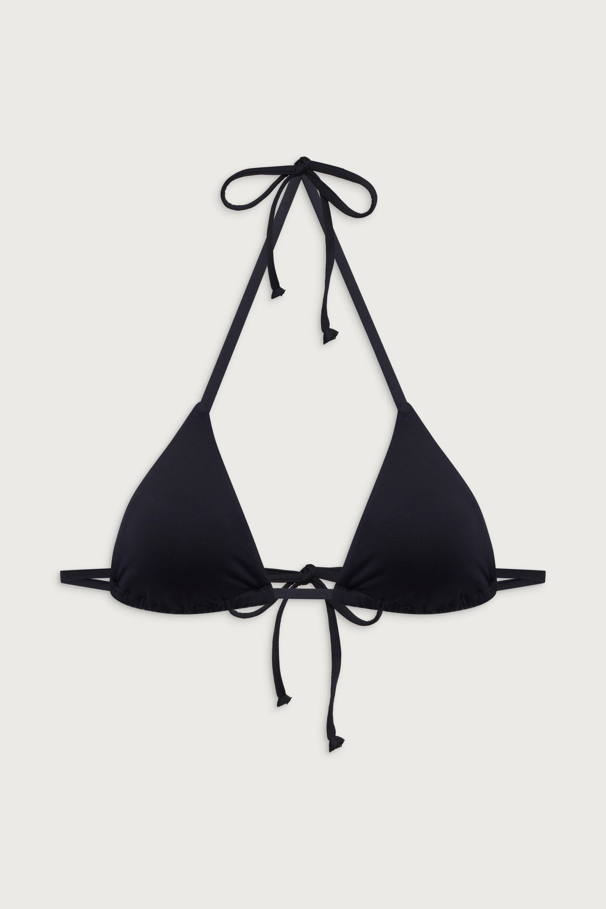The ultimate bikini top in our signature SoftSwim fabric. Nick features a skimpy triangle shape and adjustable string straps that tie around the neck and back to give you a custom fit. Pair the Nick bikini top in Black with the matching.Tia bottom as the perfect tanning set.