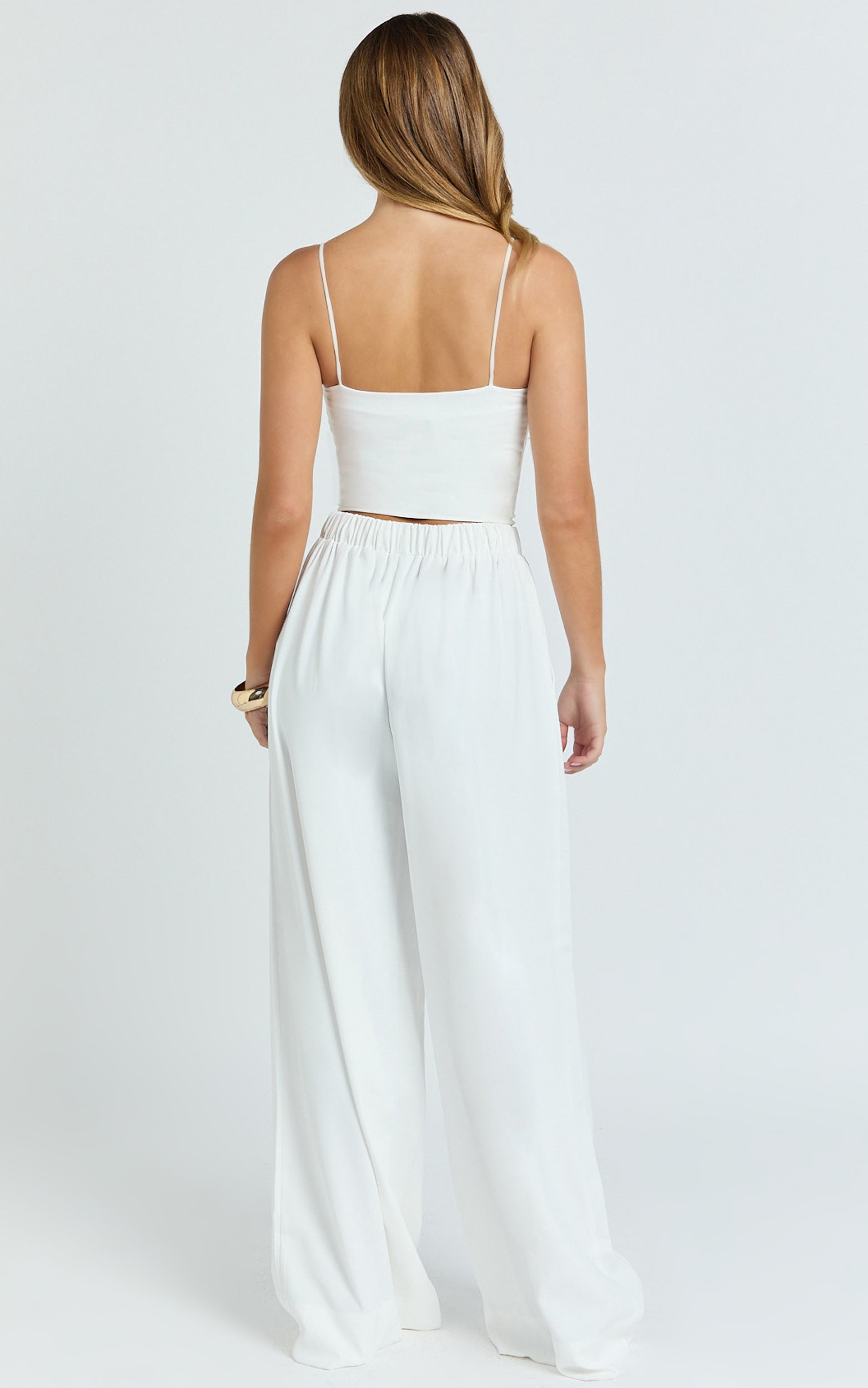 Nicole pants are your shortcut to a clean, elongating silhouette, perfect with a fitted crop, sleek bodysuit, or a tonal blazer for monochrome chic. The crisp white hue makes every outfit feel fresh and elevated, from brunch to late-night plans. Slip on strappy heels or low-profile sneakers and let these Pants do the talking.