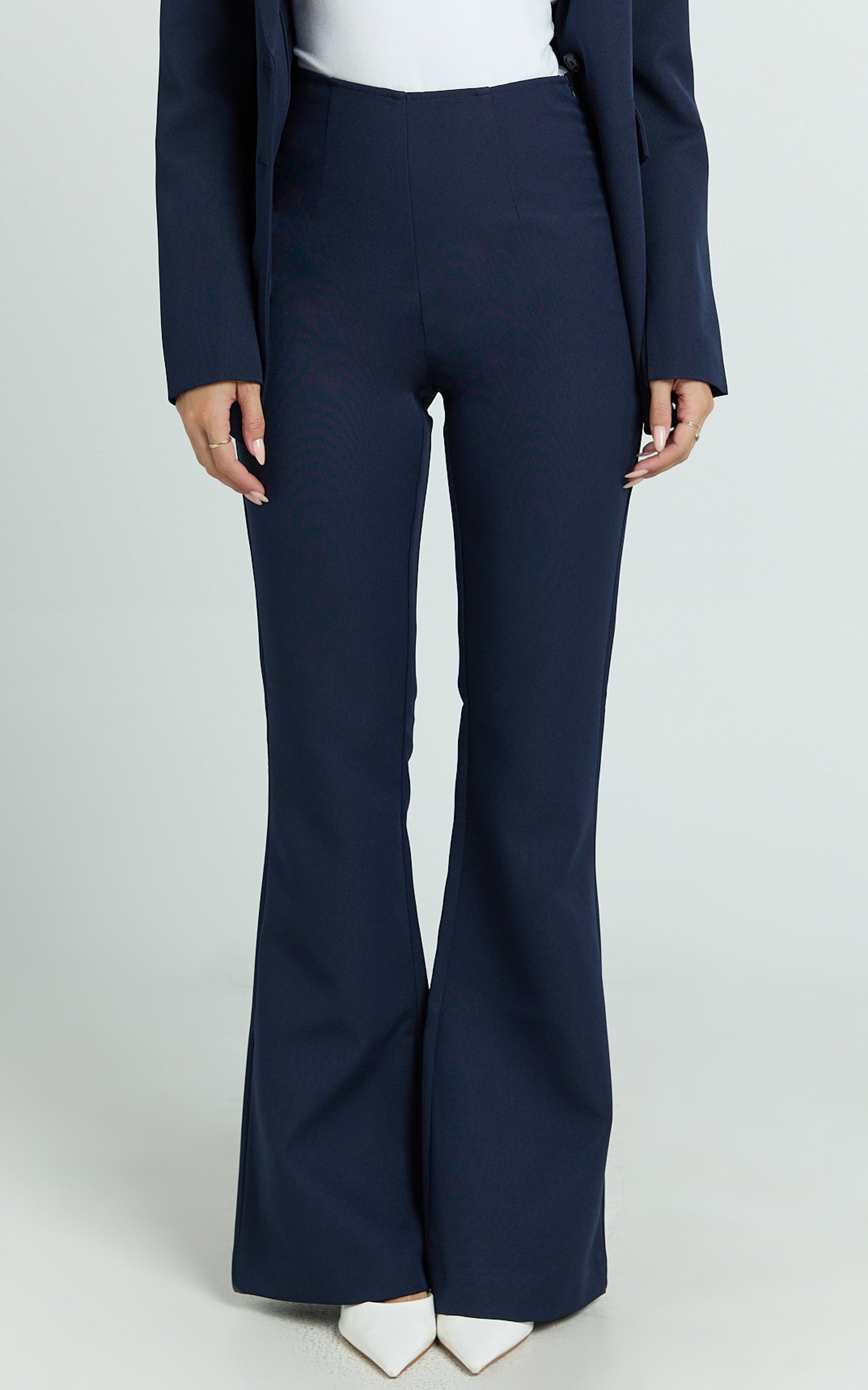 Nola Pants - Mid Waisted Pleated Flare Pants In Navy are your shortcut to elevated outfitting with endless mix-and-match potential. The mid rise flatters, the flare balances proportions, and the classic hue plays well with everything from lace accents to ankle boots when the mood calls. Consider them the versatile Pants you’ll reach for whenever smart, sculpted dressing is on the agenda.