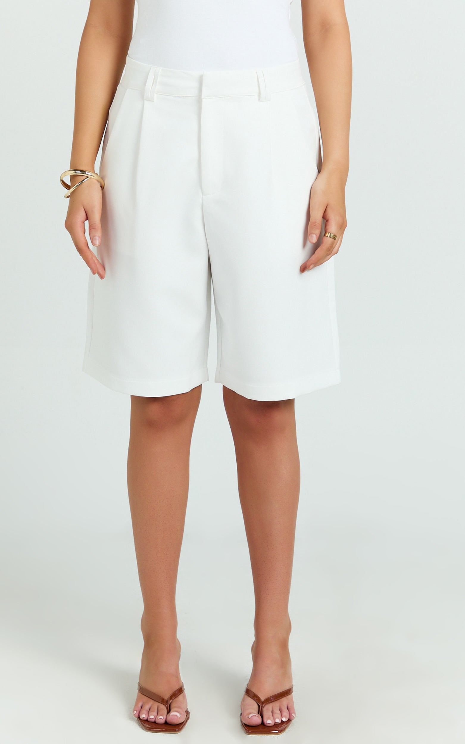 Nola Shorts deliver effortless balance: sleek lines, mid-rise waist, and a versatile white hue that pairs with everything. Dress them up with a fitted corset top and strappy heels for a going-out vibe, or keep it laidback with a cropped tee and slides. These shorts are made for repeat wear, easy, airy, and instantly put-together.