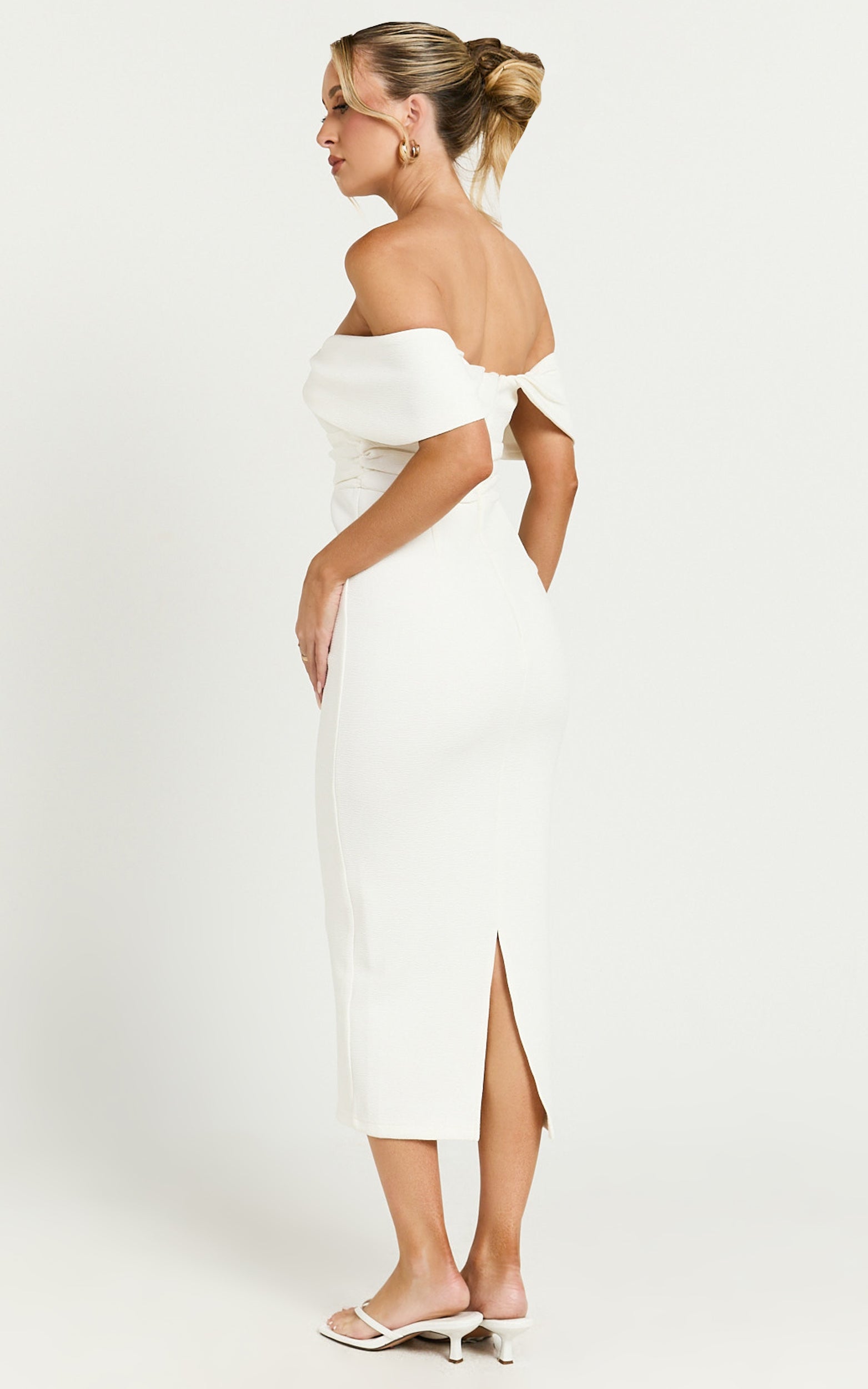 Make a statement in the Noraly Midi Dress - your new go-to Off The Shoulder Slip Dress that's an absolute must-have for any wardrobe. Crafted with a blend of high-quality Cotton and Polyester, this piece promises not only a luxurious feel but also ensures a flattering fit that drapes beautifully across all body types. With its pristine White color, it exudes a timeless elegance that's perfect for any formal occasion or your next big event.