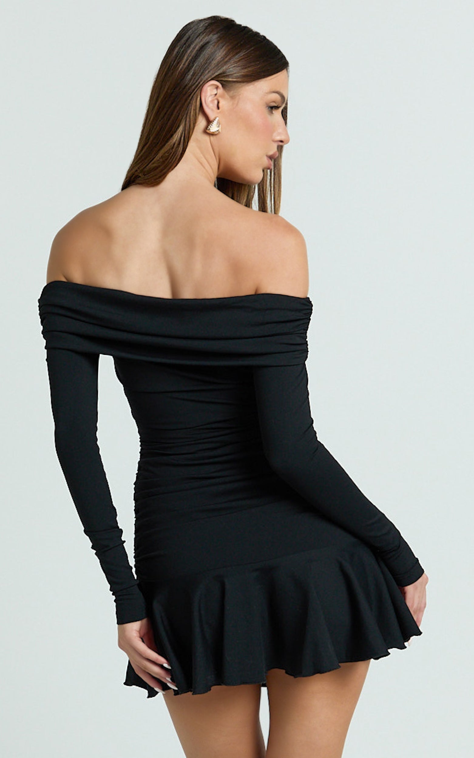 Ruched. Flip skirt. This little black moment brings instant hourglass energy with a body-hugging fit and flirty movement, your go-to for last-minute plans and big main-character nights. Think curve-loving gathers through the waist and a dance-ready mini length that’s made to show off.