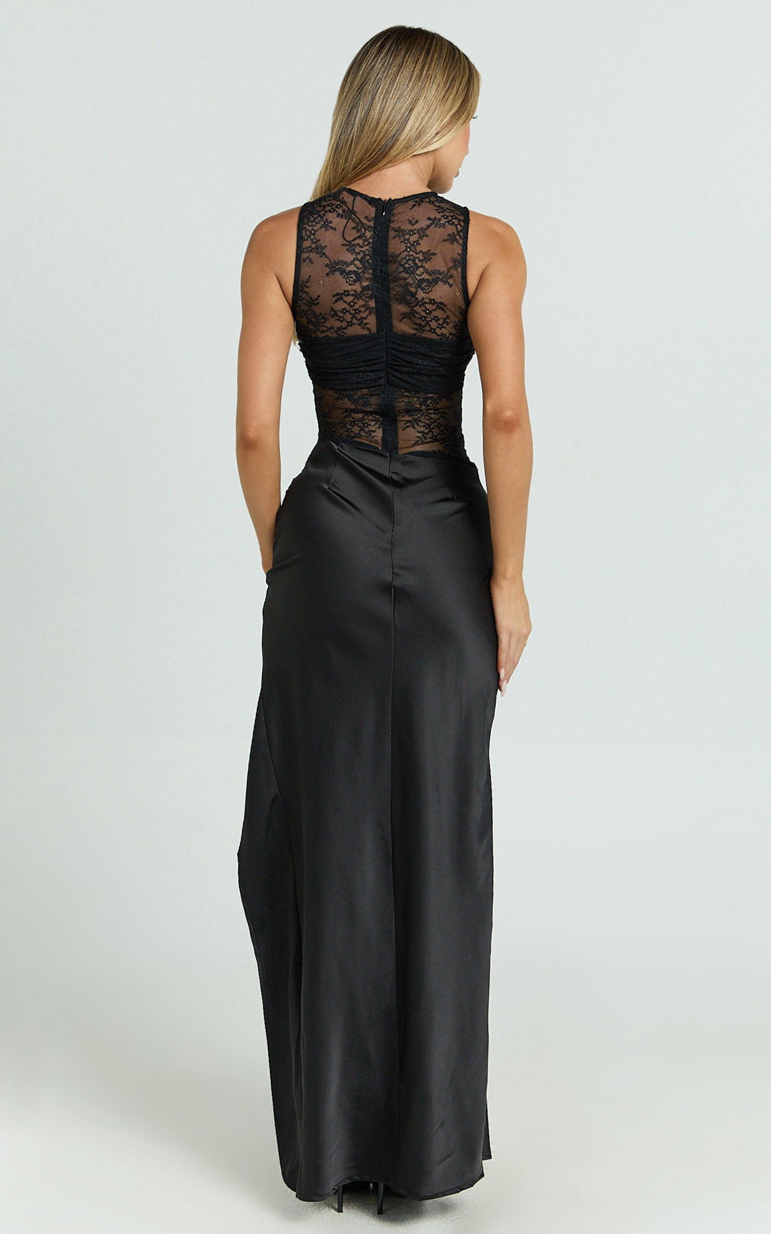 Contrast lace detailing highlights your shape, while the sleek, fitted silhouette delivers a Monochrome moment with serious after-dark energy. Think minimal effort, maximum impact, sleek hair, dewy glam, and you’re the main character.