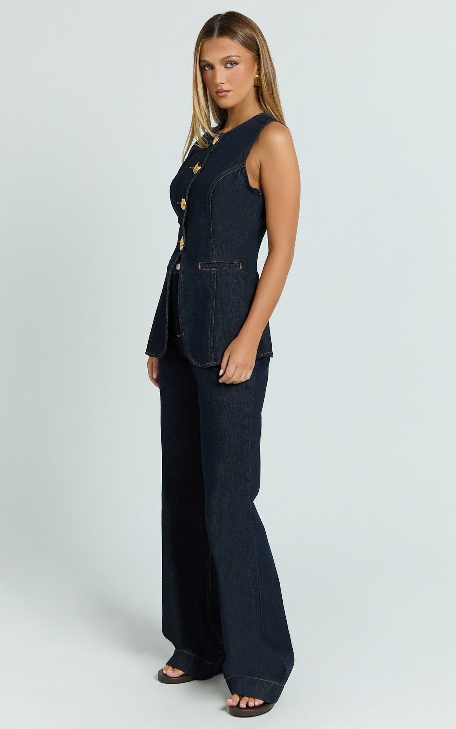 Sleek and elongating, it layers like a dream over white tank tops and pairs perfectly with summer stripes for an easy, trend-right finish. The tailored cut and clean lines give polish, while the raw tone brings that cool-girl edge, wear it closed as a standalone top or open for a laidback layers moment.