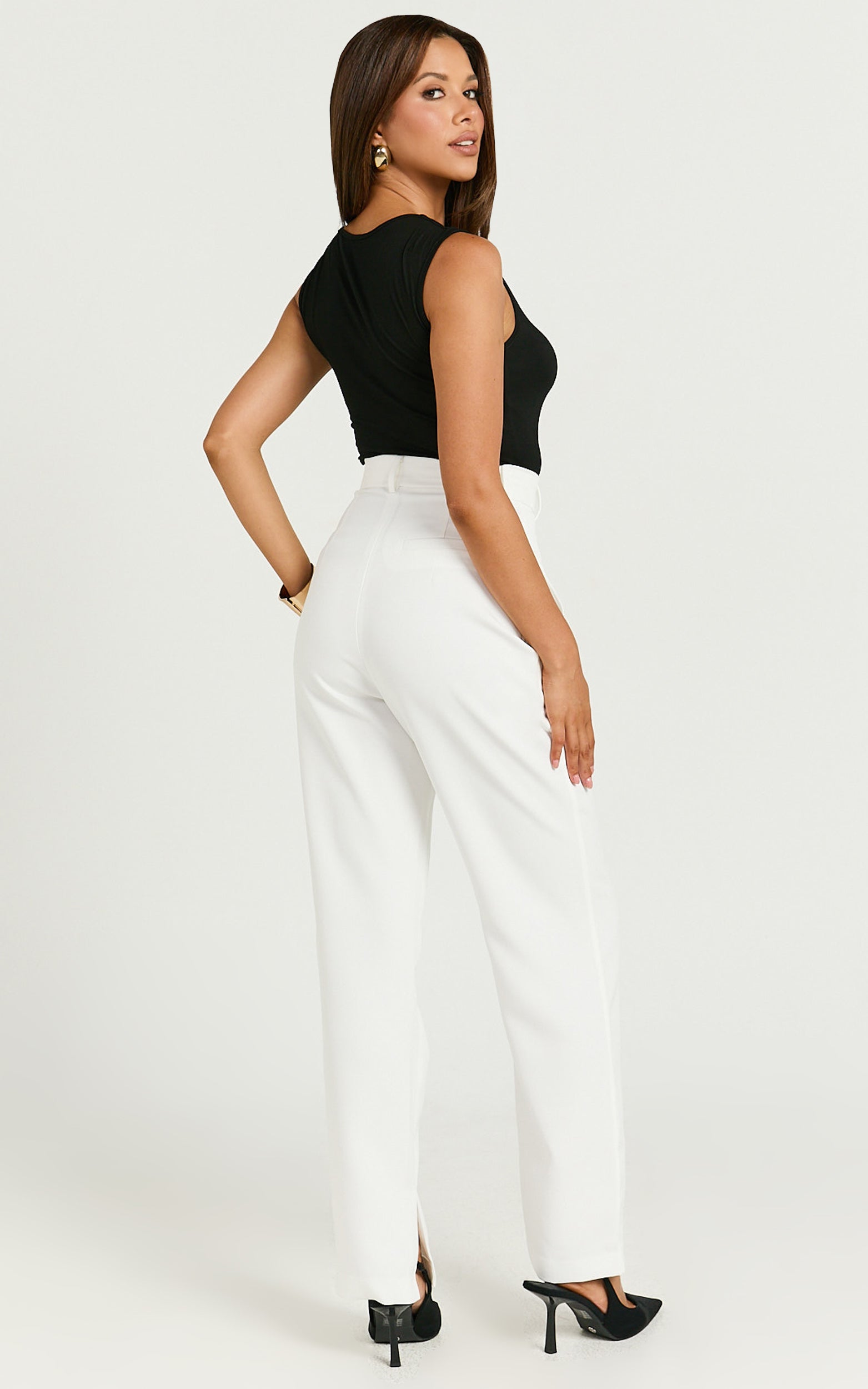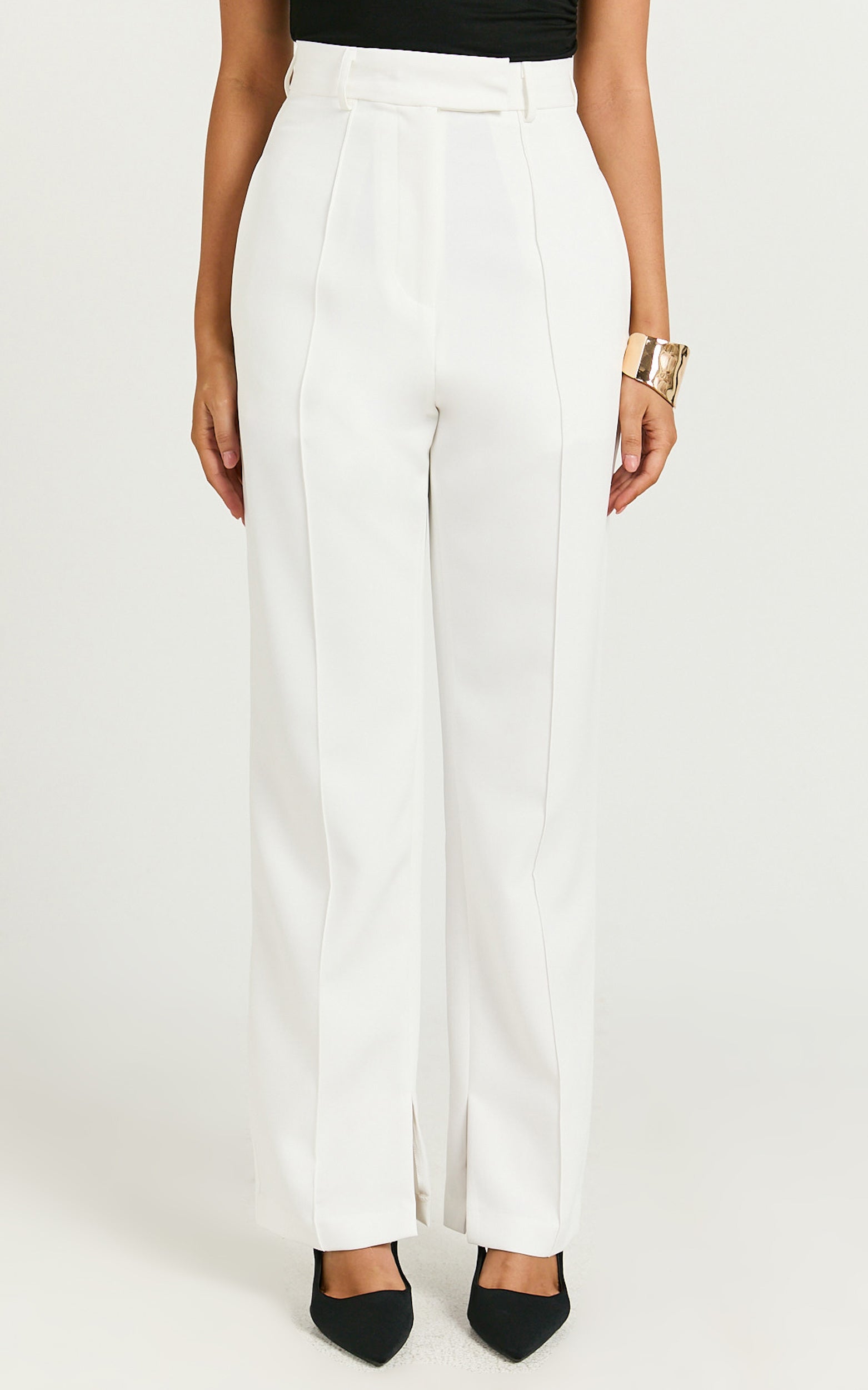 Elevate your wardrobe with the Rogers Pants, a stunning blend of style and sophistication. These high-waisted, off-white champions of chic are crafted from a mid-weight woven polyester, designed to bring that sleek, tailored look with a contemporary tapered finish. Perfect for the fashion-forward woman, they serve as the ultimate statement piece in both workwear elegance and casual glamour.