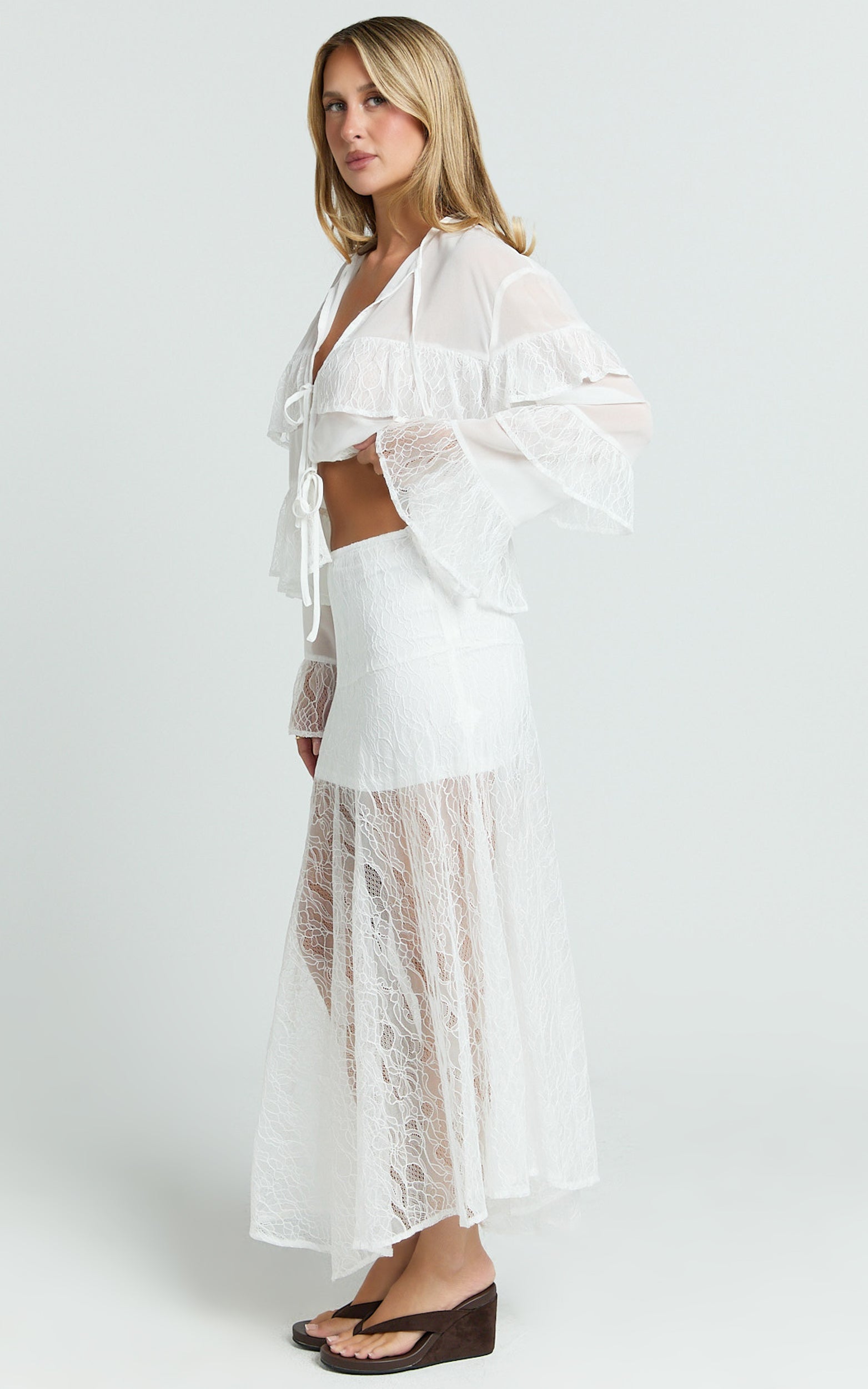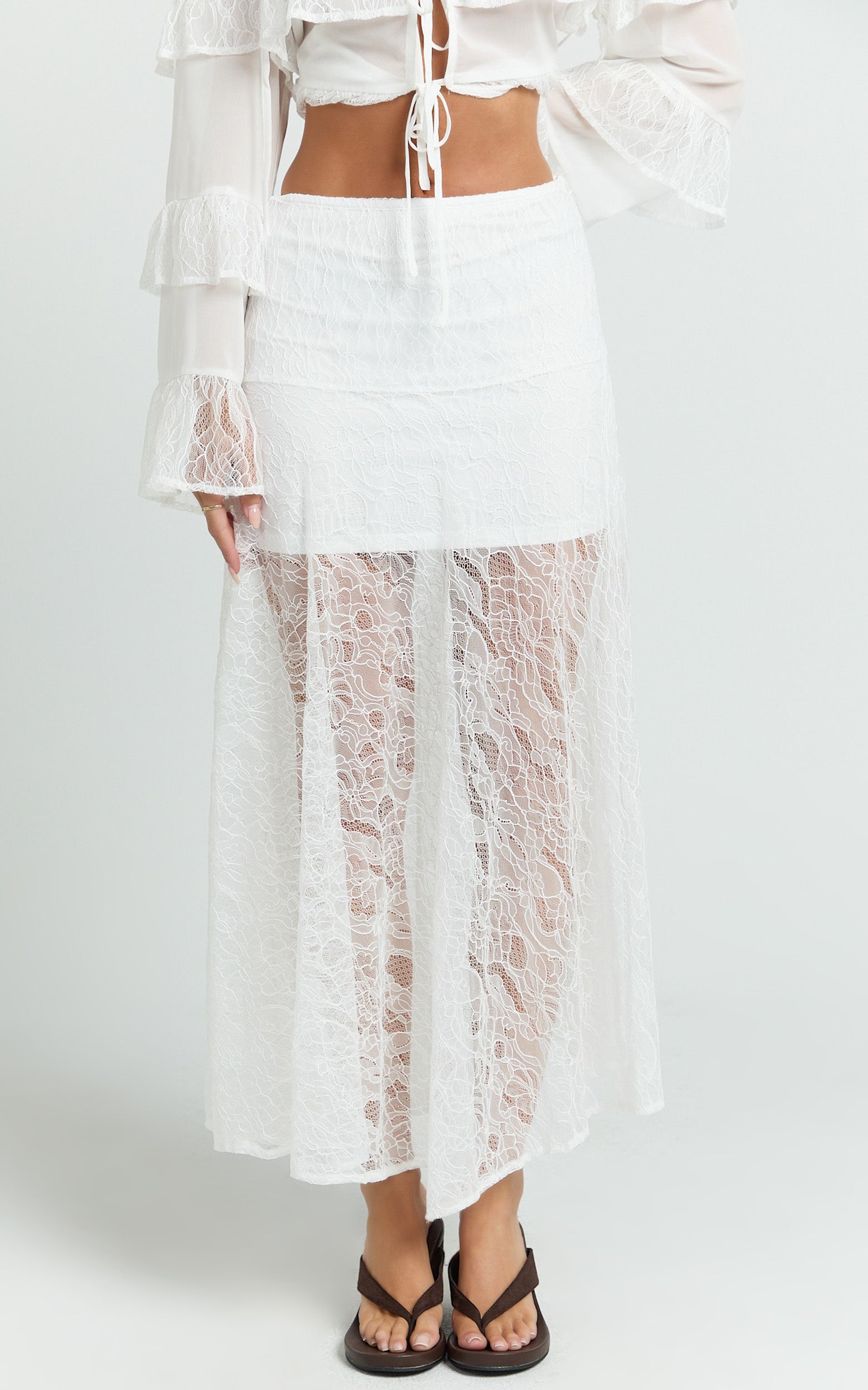 The Safiya Maxi Skirt shines with minimalist vibes and on-trend Lace maxis energy, style it with a fitted crop or an easy button-up for effortless balance. Pair with strappy heels or simple slides and let the delicate texture do the talking. A timeless white skirt you’ll reach for on repeat.