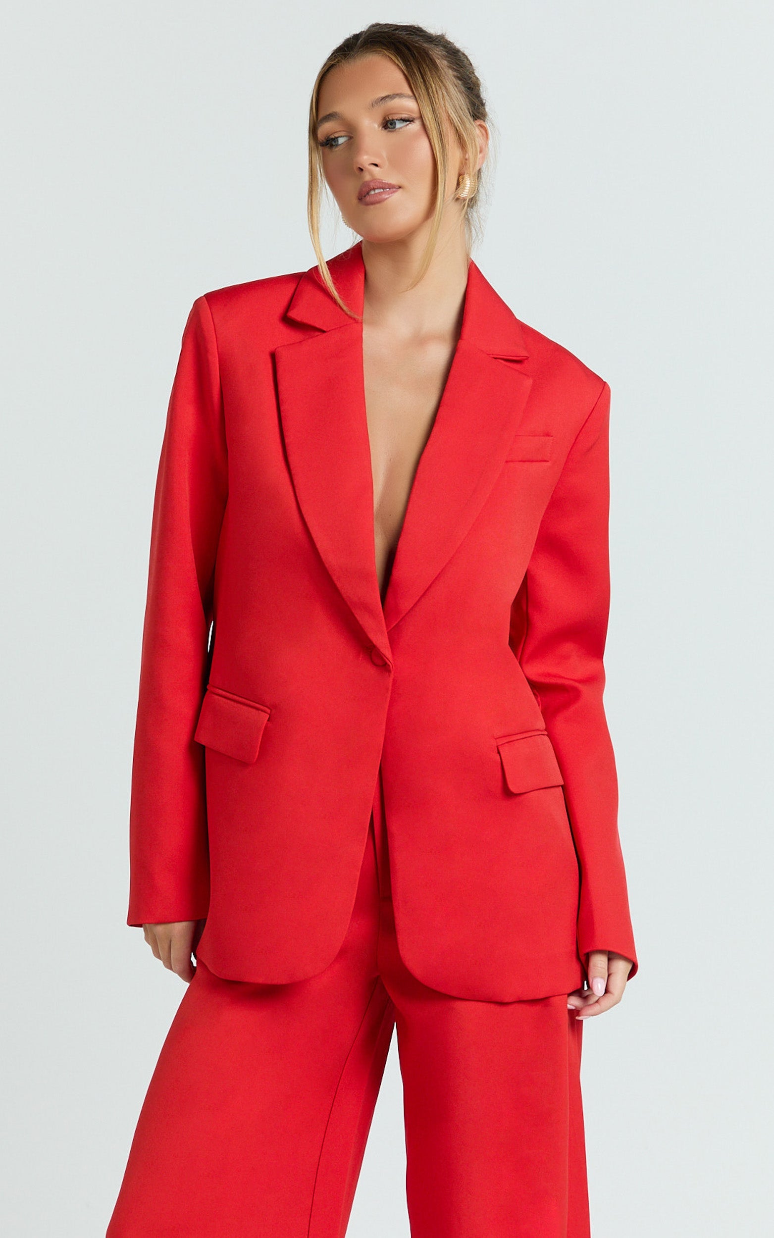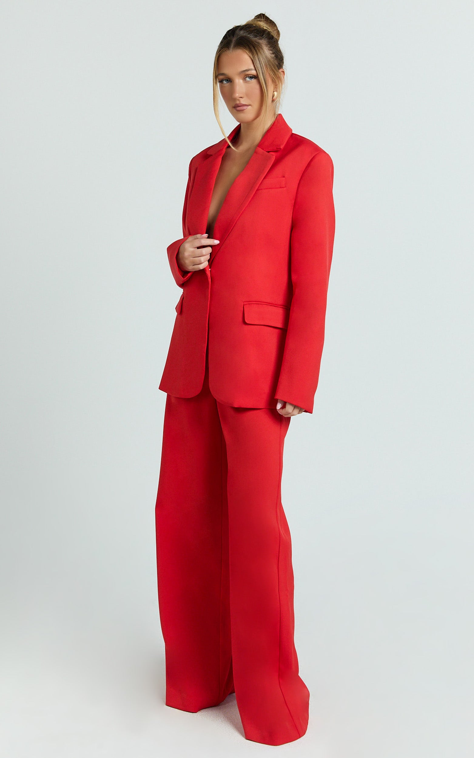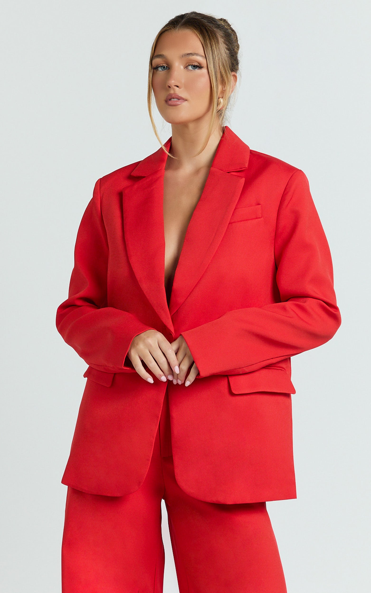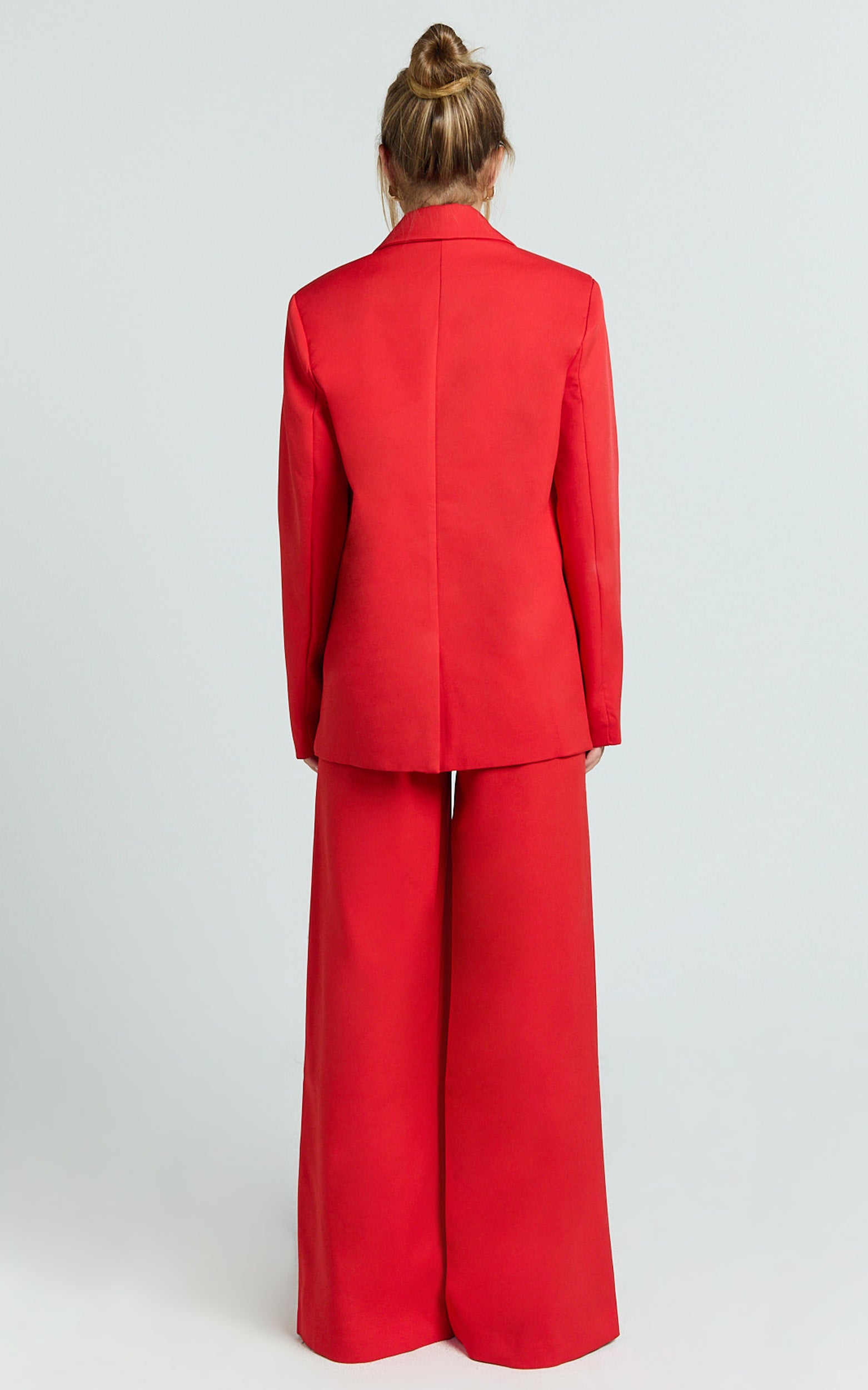 Selena Blazer nails the season’s love for puff sleeves-inspired volume and fringe details energy, pair it with Denim shorts for off-duty edge or contrast with Summer whites for a crisp, high-low moment. Wear it open over Breezy dresses or buttoned up for a sleek, tailored finish. Red never looked so ready.