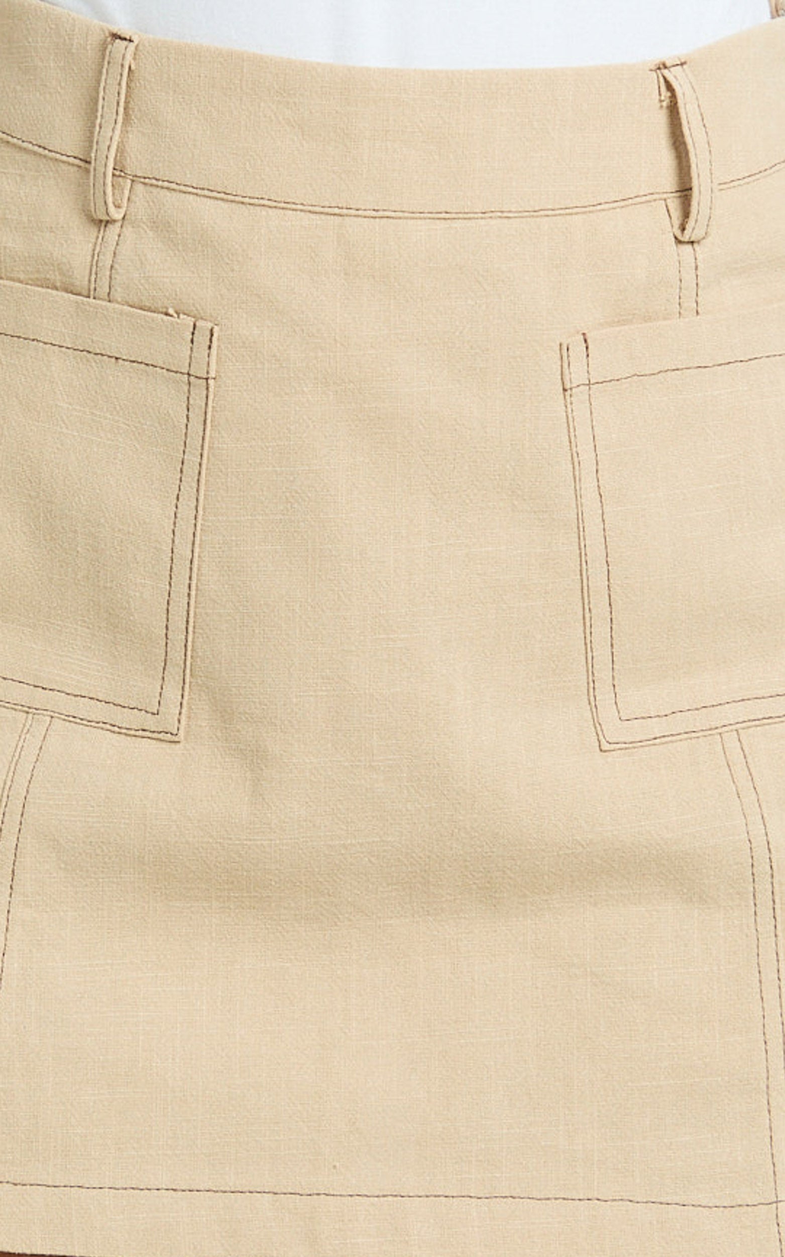 Transform your look with the Skyler Mini Skort, a game-changer in women's fashion that ingeniously combines the sleek appeal of a mini skirt with the practical comfort of shorts. Crafted from a lightweight woven ramie, this piece not only promises breathability but also ensures you stay ahead in the fashion game with its stylish linen look. Perfect for those who are all about neutral tones, this beige cargo mini skort is the epitome of casual chic, blending functionality with a flair of sophistication.