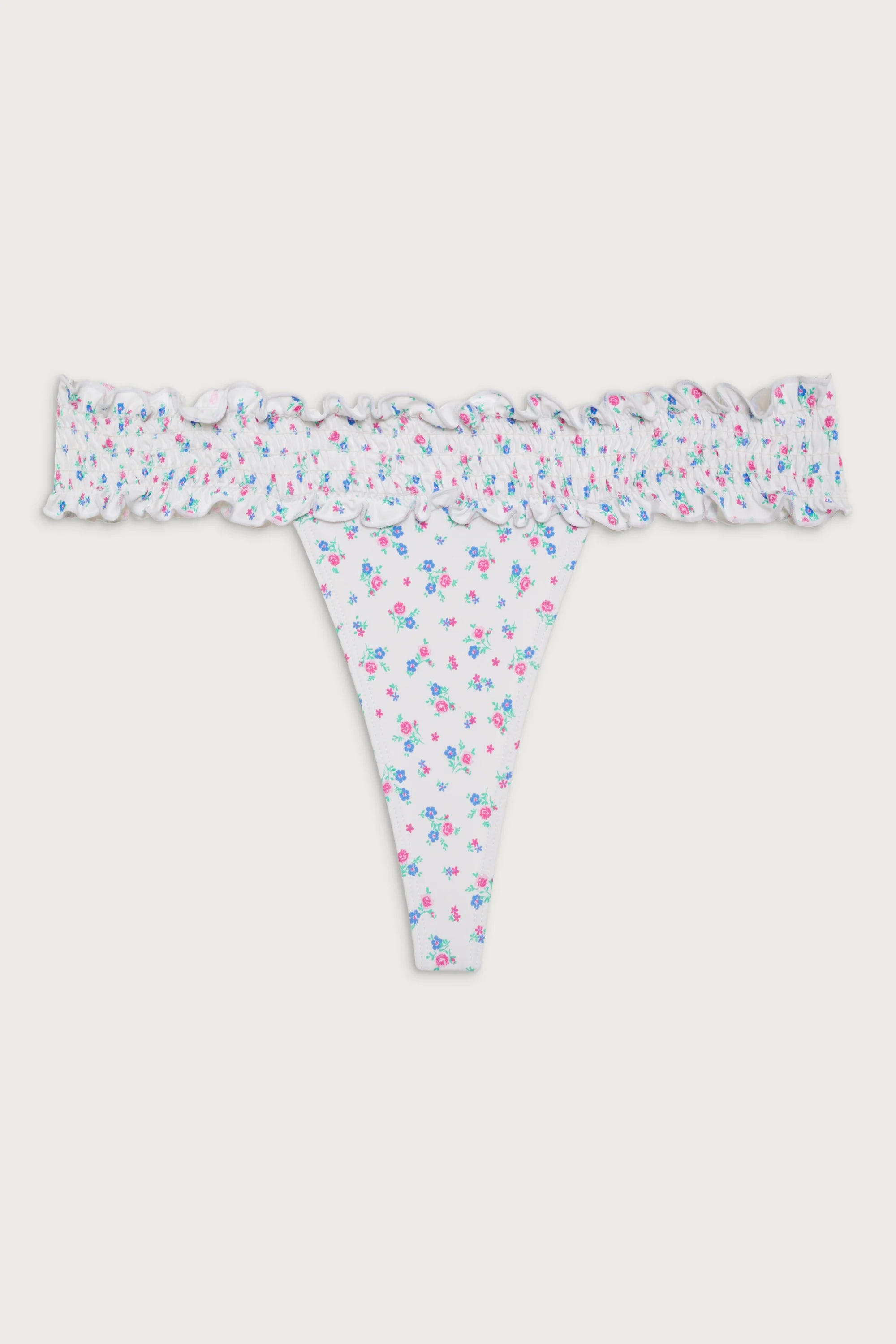 Less is more in the teeny and fabulous Sofia bikini bottom, featuring stretchy smocking textures and our newest floral Sweet Meadow print. This micro bottom is designed for bikini lovers on the hunt for a flattering elastic waistband and low-rise fit. Get a little bit of everything when you pair this ruffle bikini bottom with the matching Penelope top.
