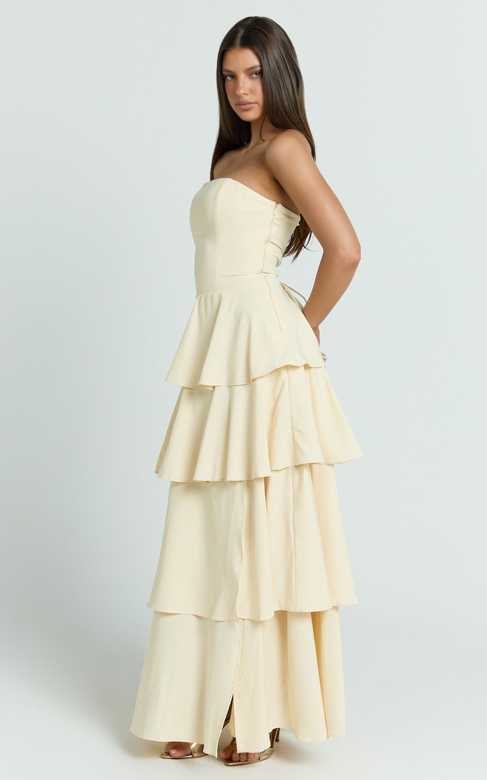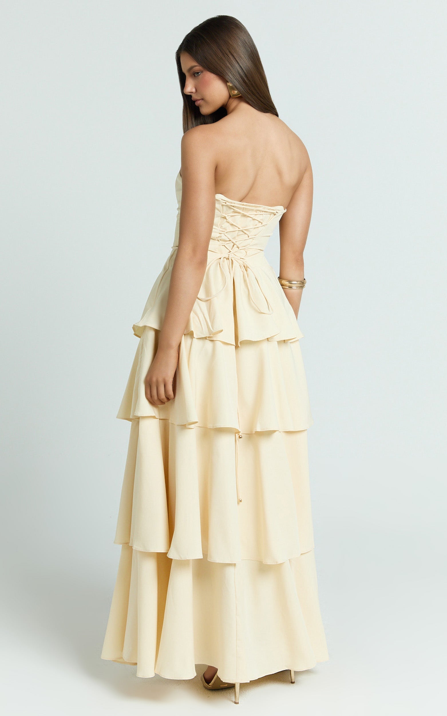 Suzy Midi Dress - Tiered Ruffle Lace Up Dress In Lemon is your go-to from our Dresses edit when you want versatility and comfort with a free-spirited mood. Add a woven tote bag for a laid-back vibe, and you’re city-proof from coffee dates to cocktails. Bright, playful, and instantly uplifting, this is the yellow midi you’ll reach for on repeat.