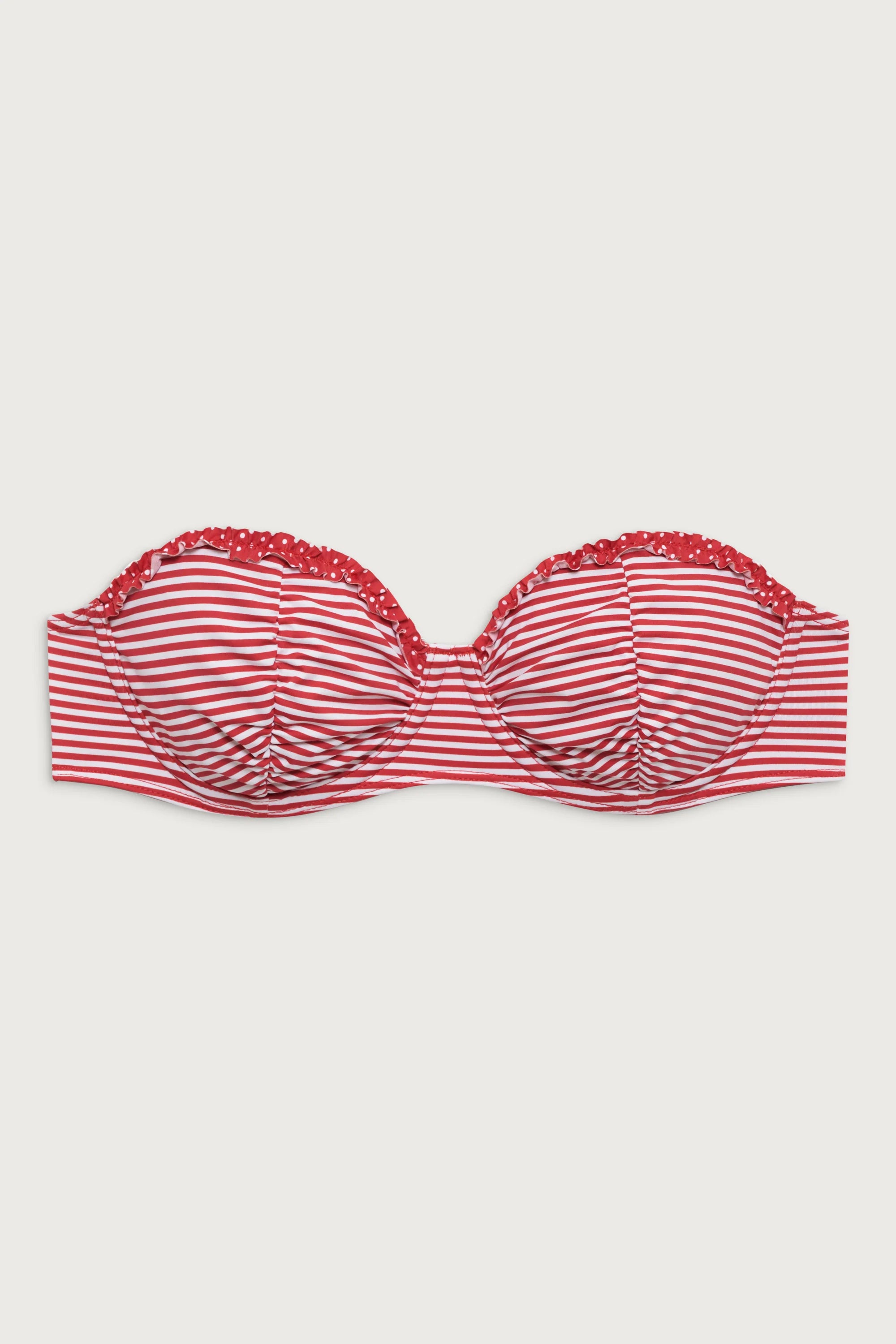 The Sweetwater bikini top is a balconette style with underwire support, padded cups, and ruched detailing. This bikini top is designed with the sweetest ruffle trim and adjustable straps that can be removed to transform the piece into a bandeau. Complete the set with the matching Mercer bikini bottom.