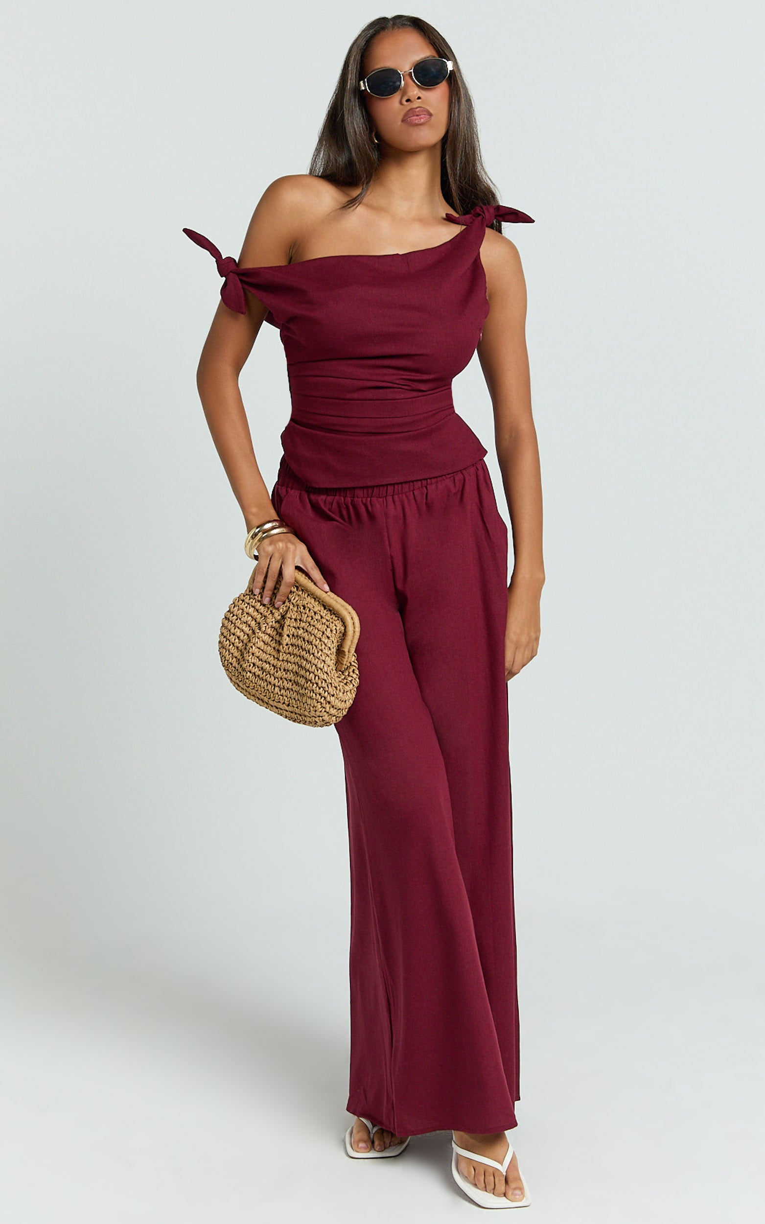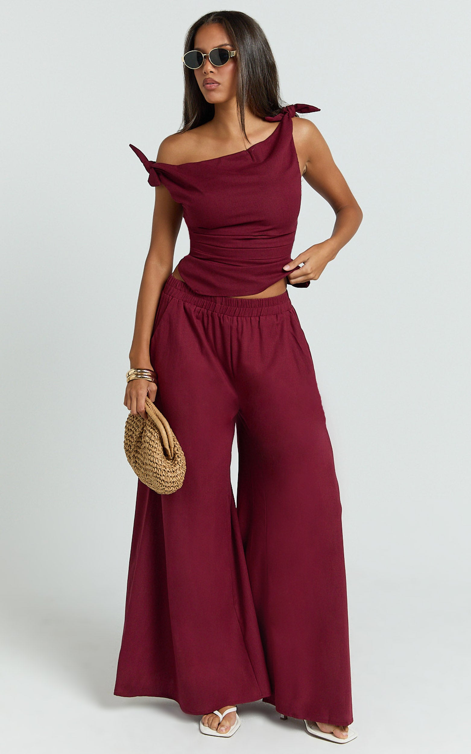 These high elasticated waist pants cinch you in comfortably, then flow into a breezy, draped silhouette that skims the body and elongates the leg, perfect for desk to drinks. Pink tones keep it playful, while the relaxed cut leans into that effortless, Minimalist vibe with a hint of Tailored polish.