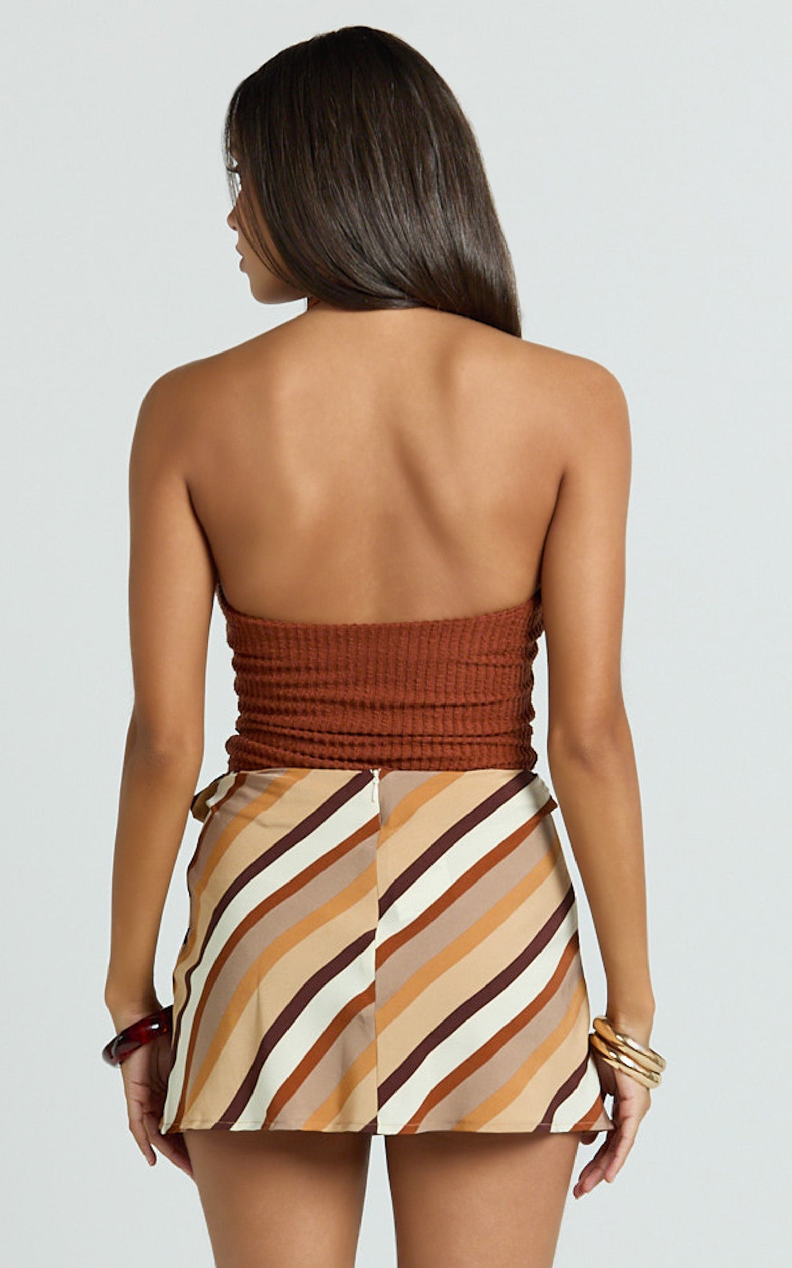 Tate Mini Skirt nails the wrap silhouette that’s big right now, giving you a custom fit and an easy, confident swish. Pair with a white tank top or a sheer dresses-inspired layer for contrast, then add pendant necklaces for polish. A chic update for your rotation, this brown mini is your go-to for effortless dressing.