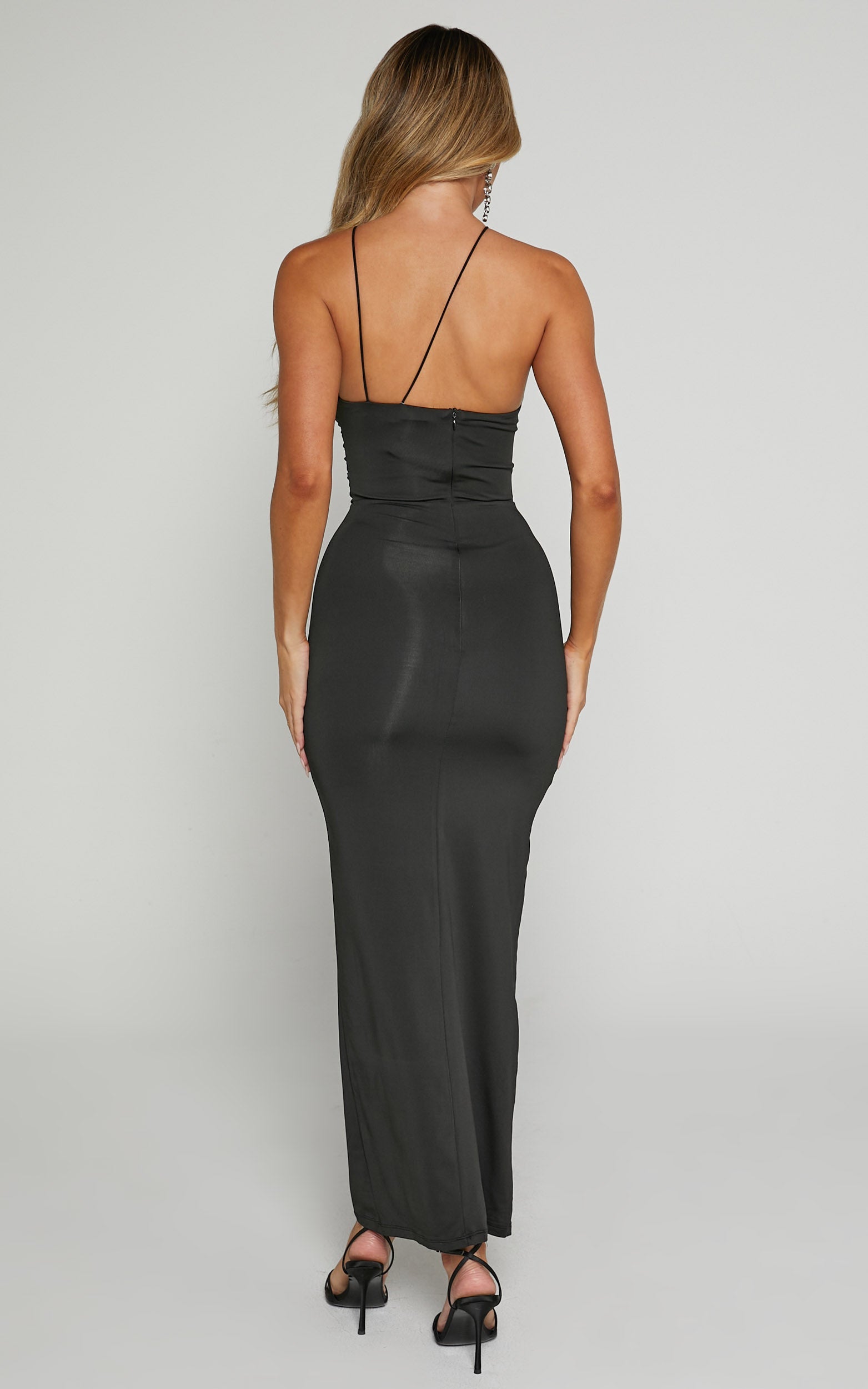 Whether you wear it as a sleeveless maxi or pair it with your favourite heels, this dress is sure to turn heads wherever you go. So why settle for anything less? Get your hands on the Teagan Bodycon Ruched Asymmetric Strap Rosette Midi Dress today and step up your fashion game!