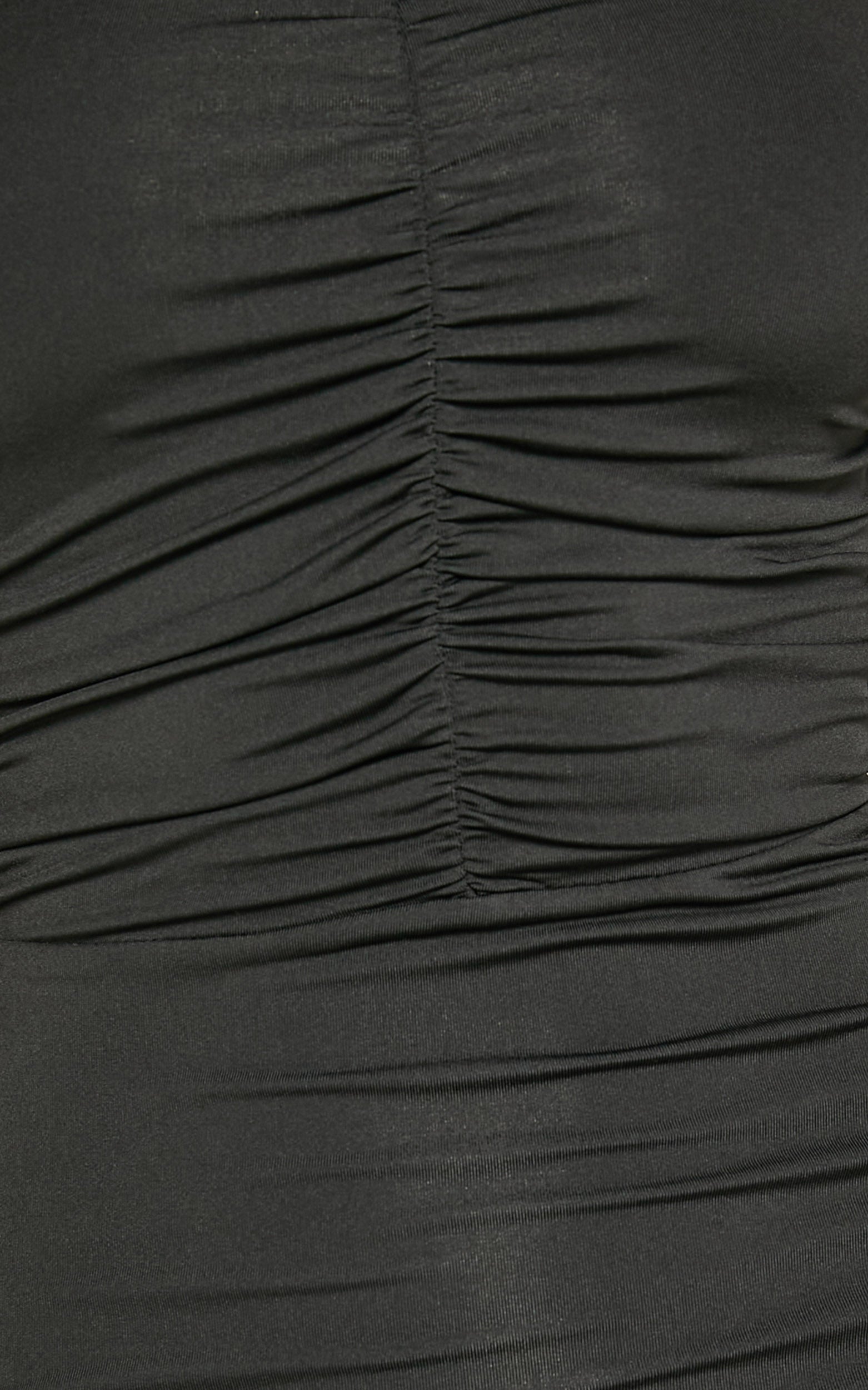 Get ready to slay in the Teagan Bodycon Ruched Asymmetric Strap Rosette Midi Dress! This black beauty is perfect for any formal occasion, featuring a bodycon fit that will hug your curves in all the right places. The ruched detailing adds texture and dimension, while the asymmetric strap with rosette detail elevates this dress from ordinary to extraordinary.