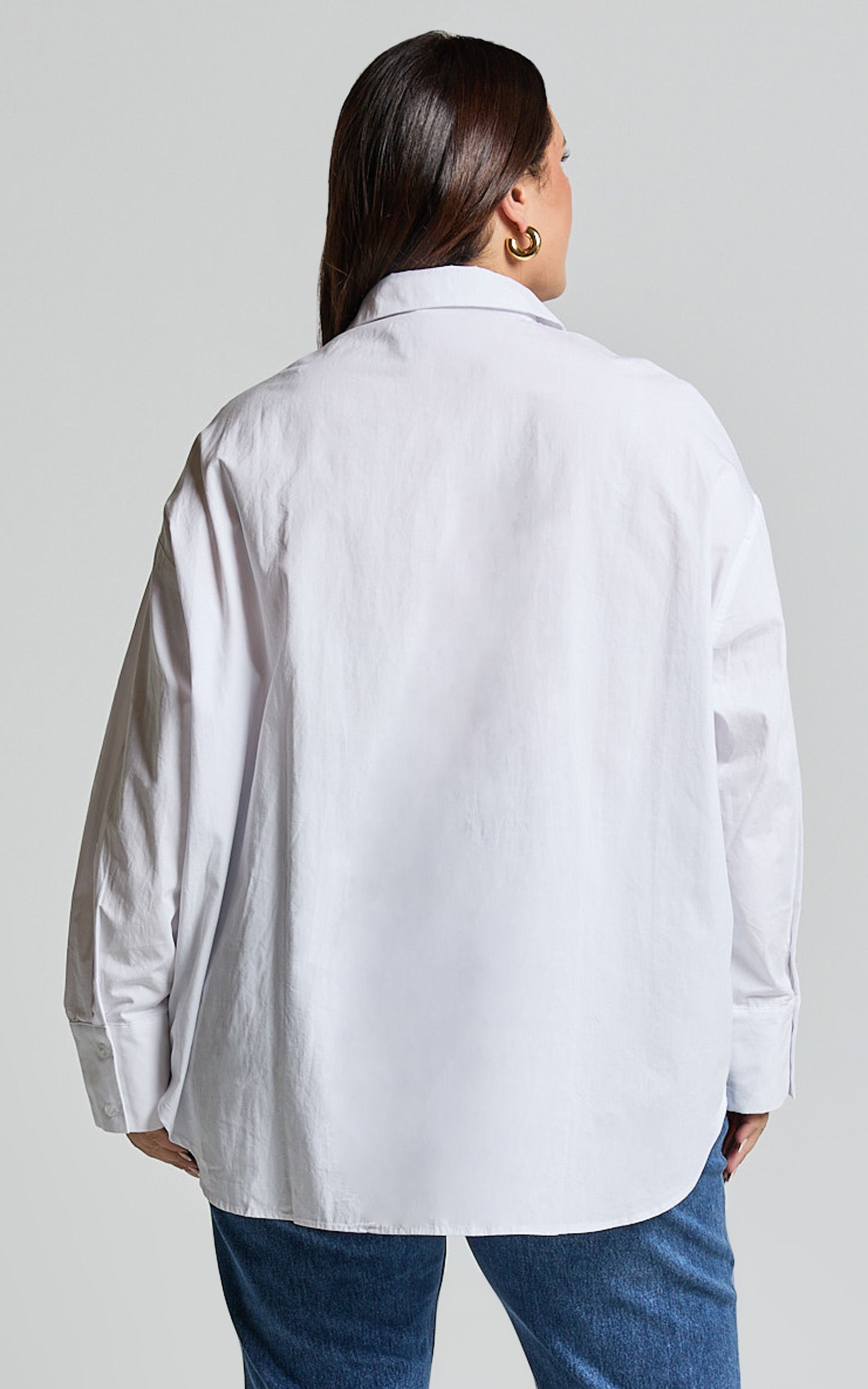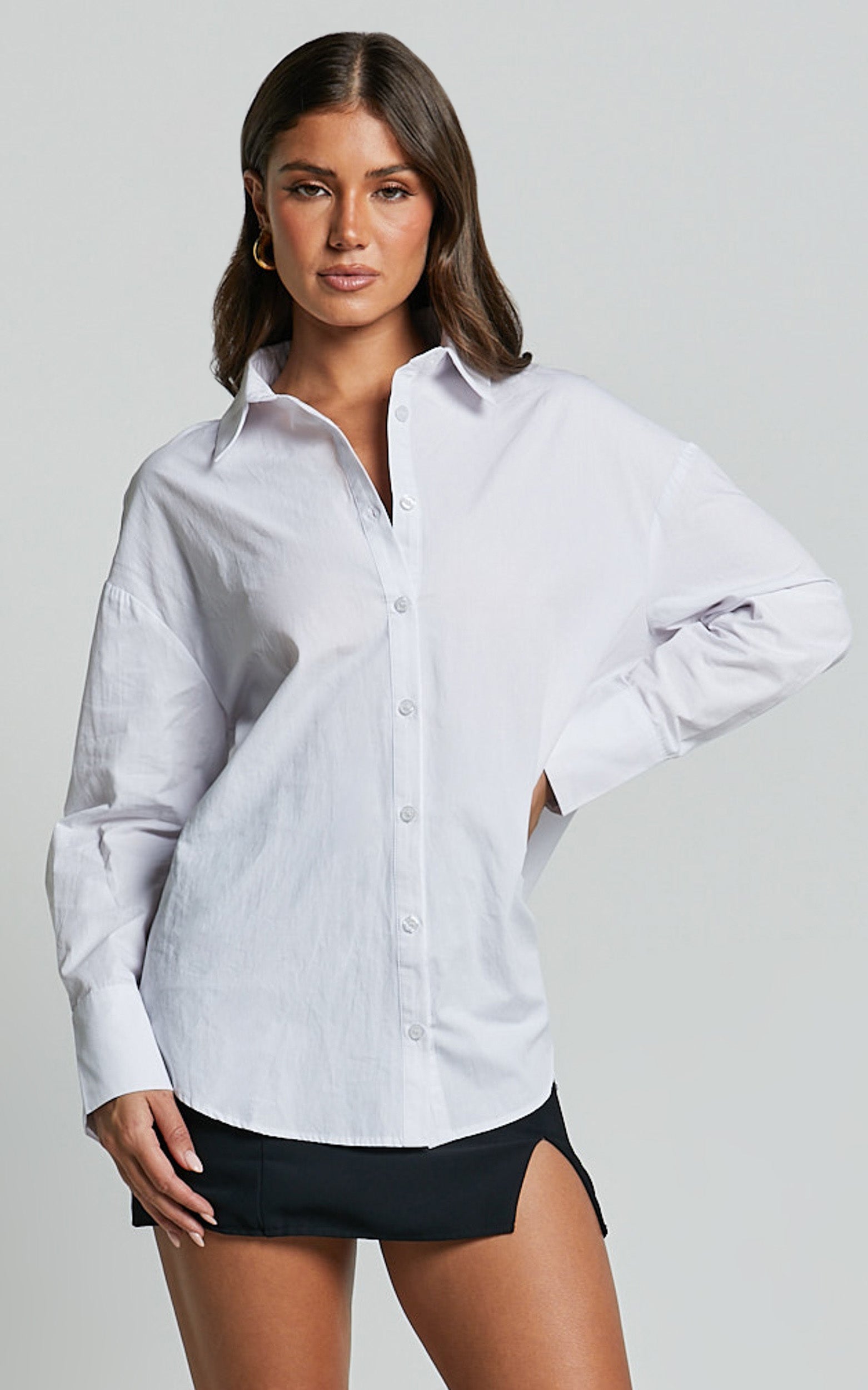 Elevate your everyday wardrobe with the Terah Shirt - Button Up Shirt in White. This versatile piece is a must-have for any fashion-forward individual, whether you're heading to a casual gathering or dressing up for a night out on the town. Crafted from 100% cotton, this shirt offers both comfort and style, making it perfect for all-day wear. Its classic collar and long sleeves add an element of sophistication to any outfit, while its crisp white hue makes it easy to pair with any bottoms in your closet. Whether you're looking to dress it up or down, the Terah Shirt is an essential addition that will effortlessly take you from daytime activities to evening soirées with ease. Embrace autumn's cool breeze and make a statement wherever you go in this timeless piece from Showpo.