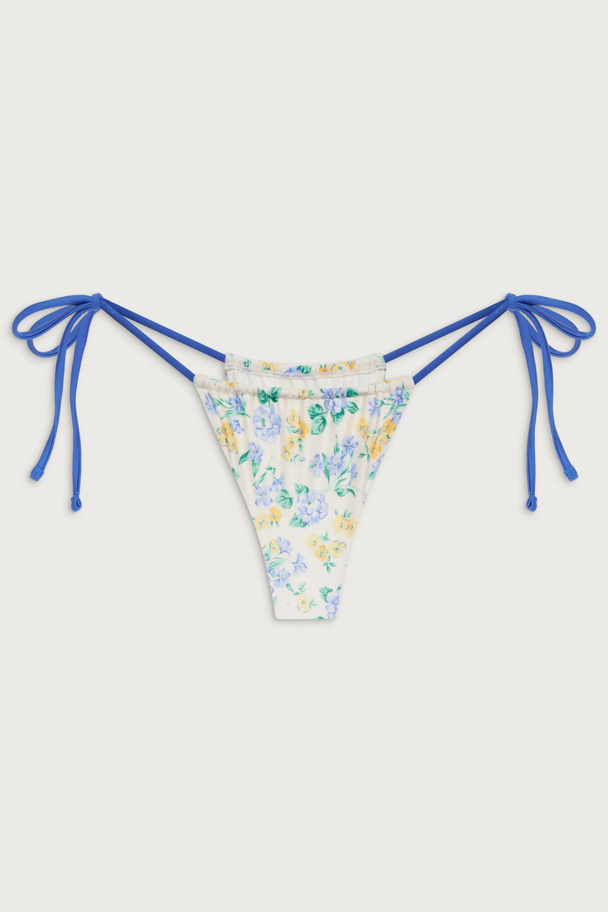 Sexy and slimming with flirty ruched details and string tie sides, the Tia bikini bottom takes the ultimate skimpy silhouette to a new level. This bikini bottom is designed with glistening shine fabric and our new Coastal Floral print. Complete the set with the matching Crescent bikini top.