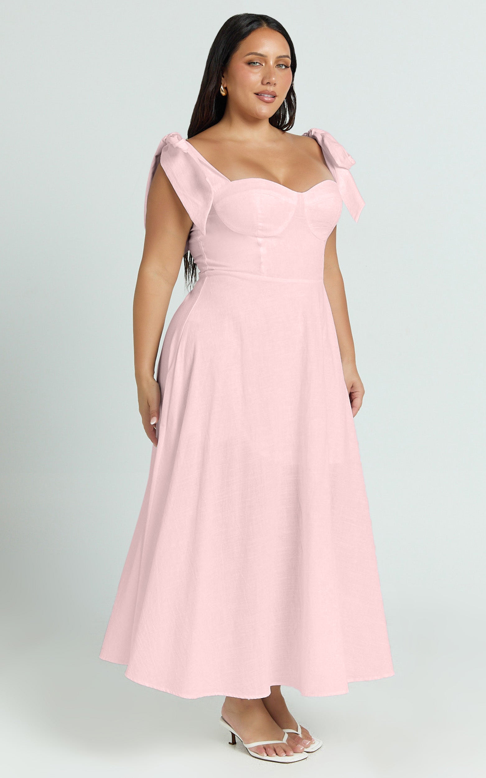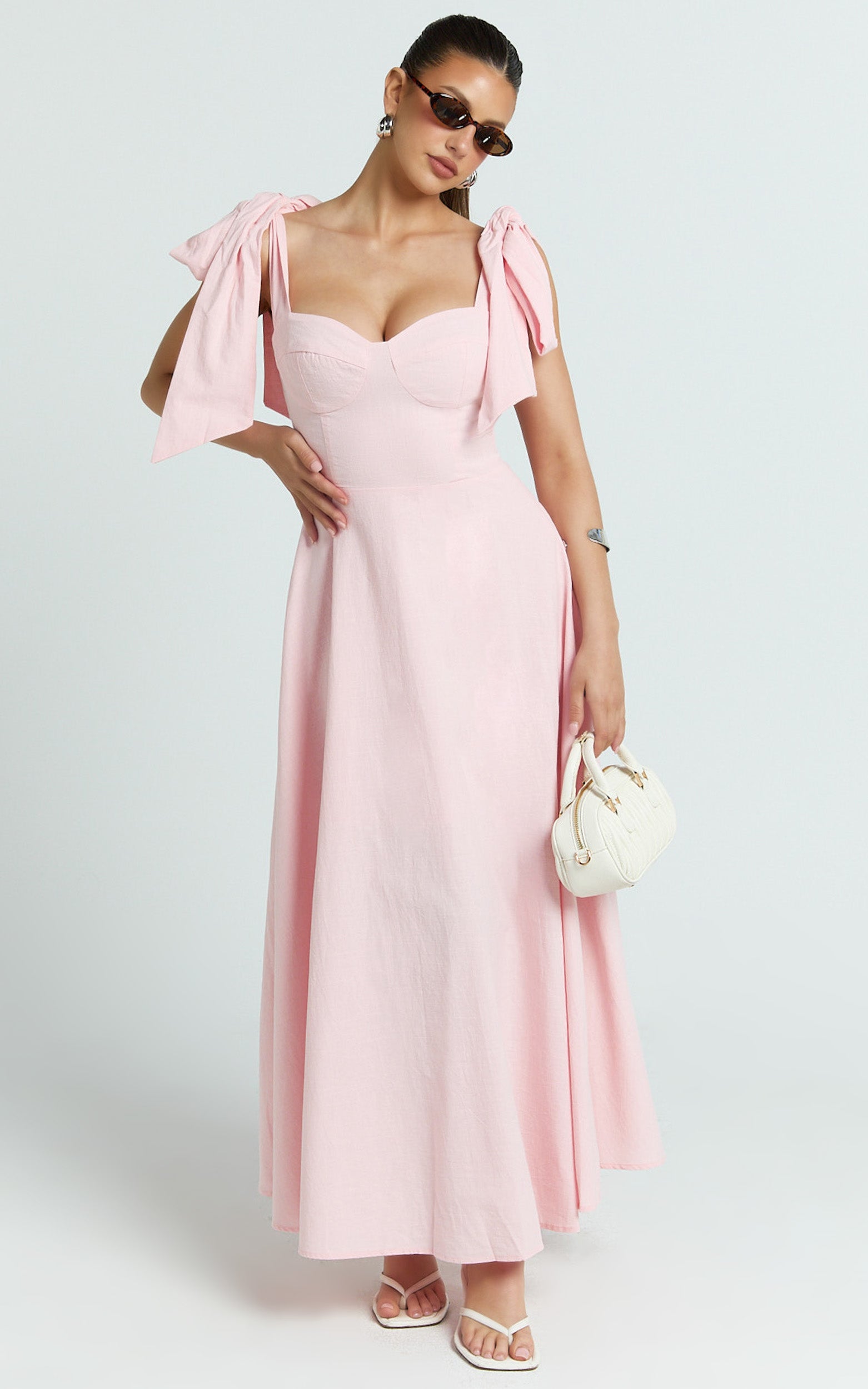 Tymia Midi Dress turns heads with a waist-snatching silhouette and adjustable ties for your perfect fit. Designed to flatter and go from day to night, it pairs effortlessly with Evening flats and Oval sunglasses for that elevated, off-duty moment. Add a touch of High-shine accessories and you’re set, sweet, confident, and totally unforgettable.