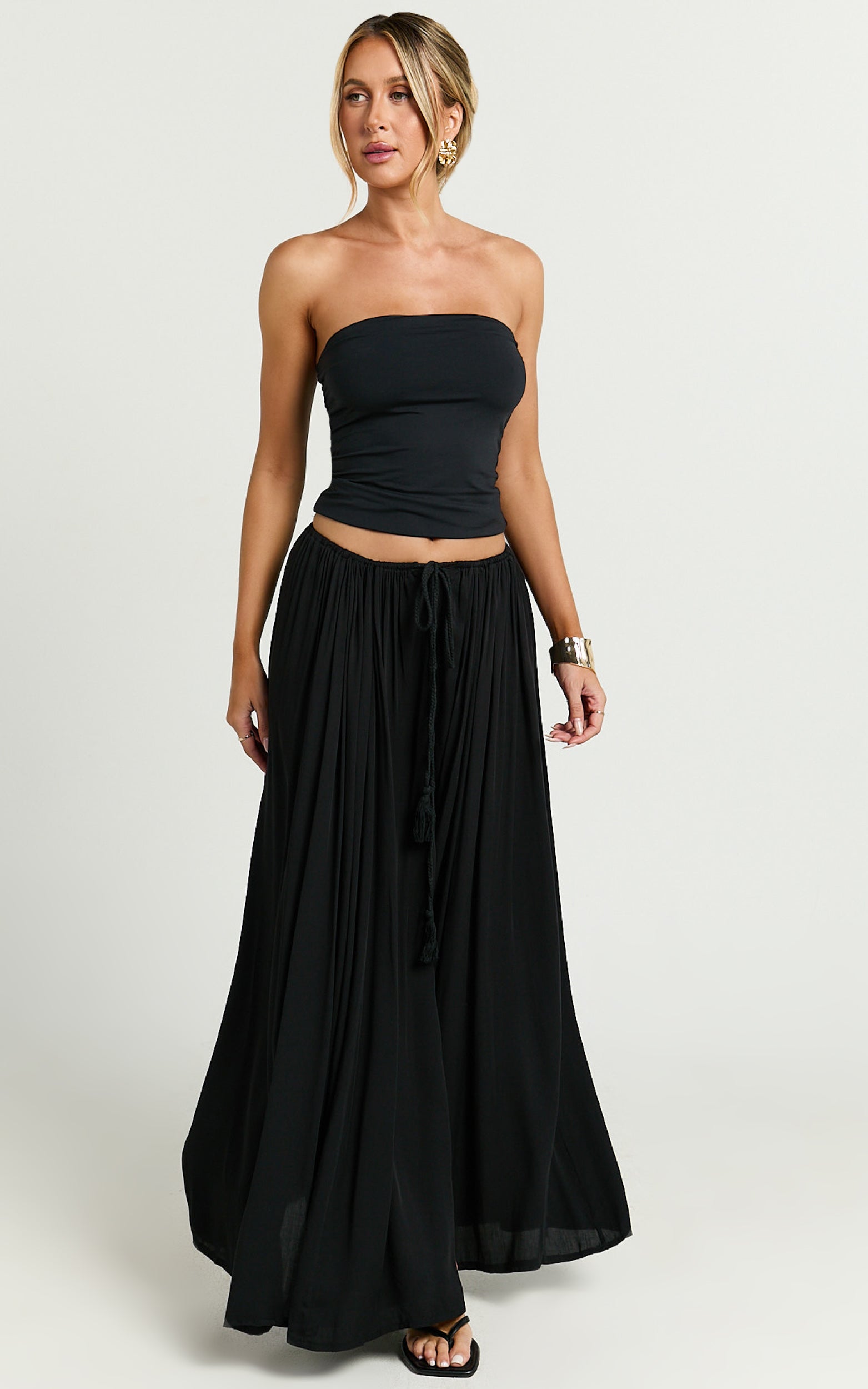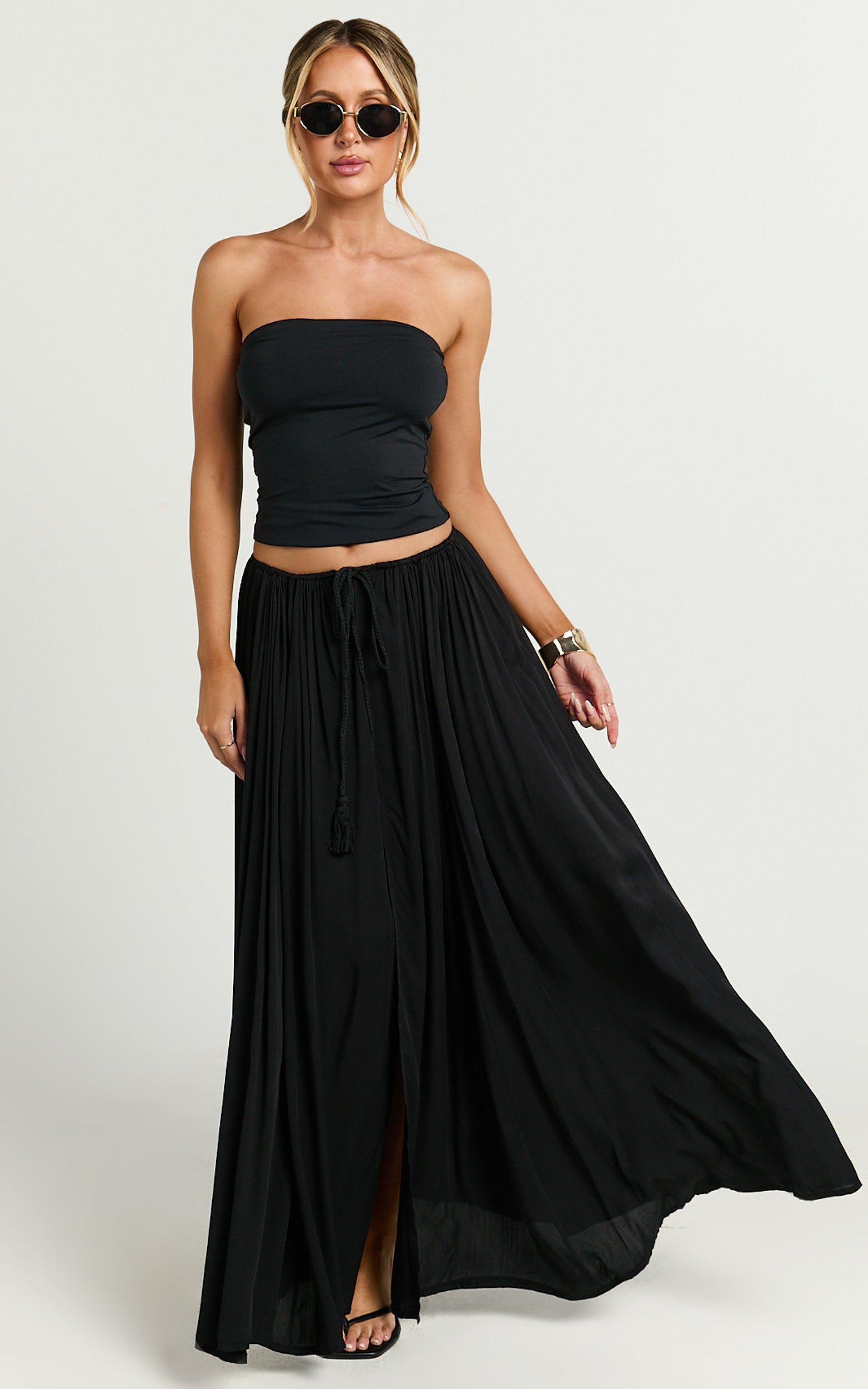Our Under The Twilight Maxi Skirt is the perfect day to night piece. Featuring a thigh split and elasticated waist with a tassel tie, this flowy skirt will be your summer saviour for escaping the heat this season. Pair it with a cute crop top and block heels, for a super cute day look!