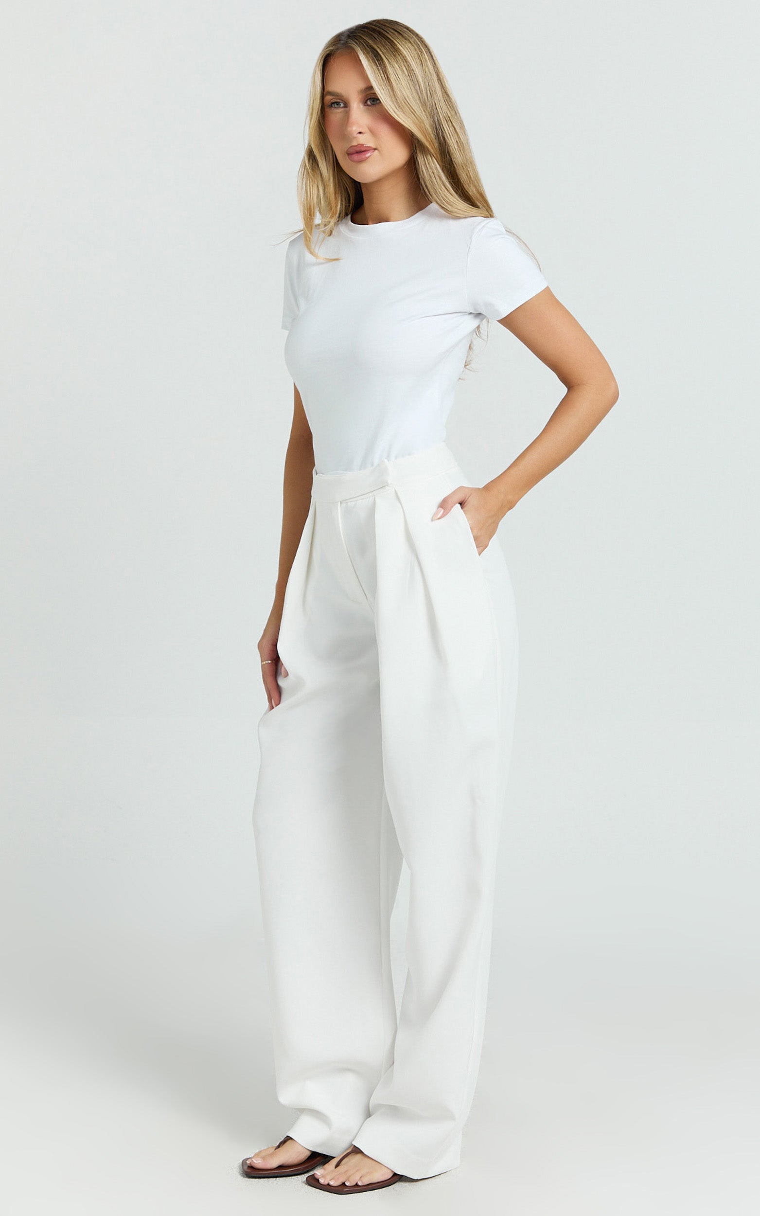 Style the Valencia Pants with a fitted crop top and strappy heels for a night out, or a tucked-in blouse and pointed mules for effortless workwear. Crisp, versatile, and endlessly remixable, Valencia Pants bring that fresh white-on-white energy you’ll reach for on repeat.
